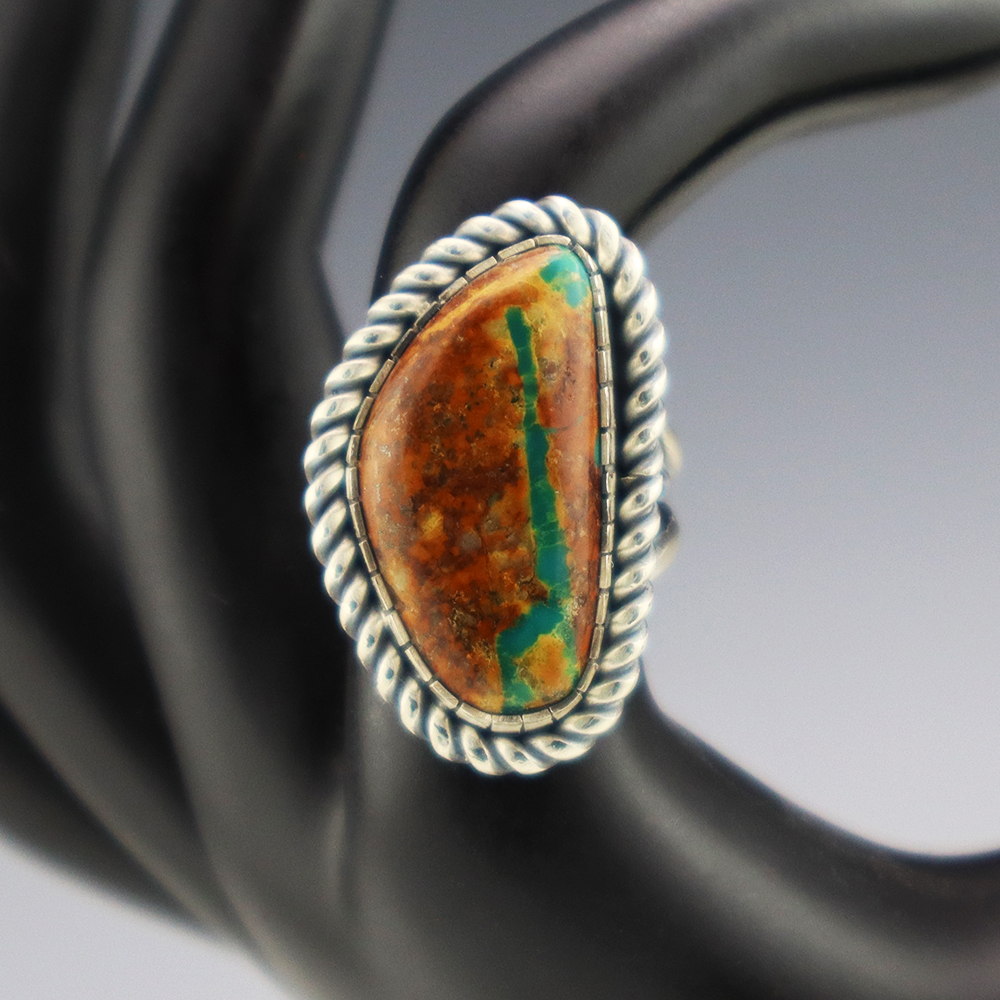 NATIVE AMERICAN TURQUOISE & JET RING BY NANCY & SHELDON WESTIKA 11 1/4
