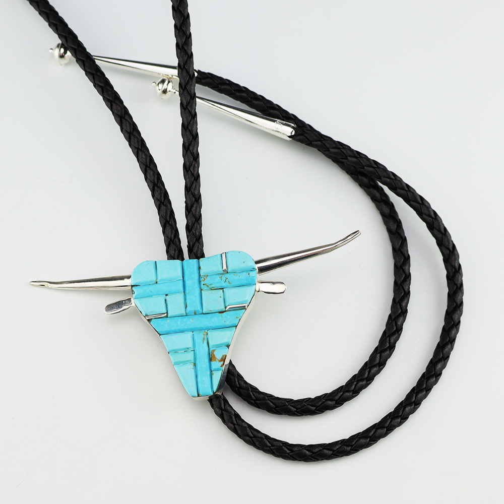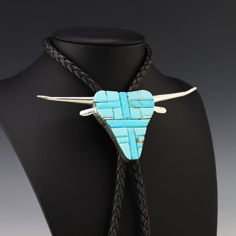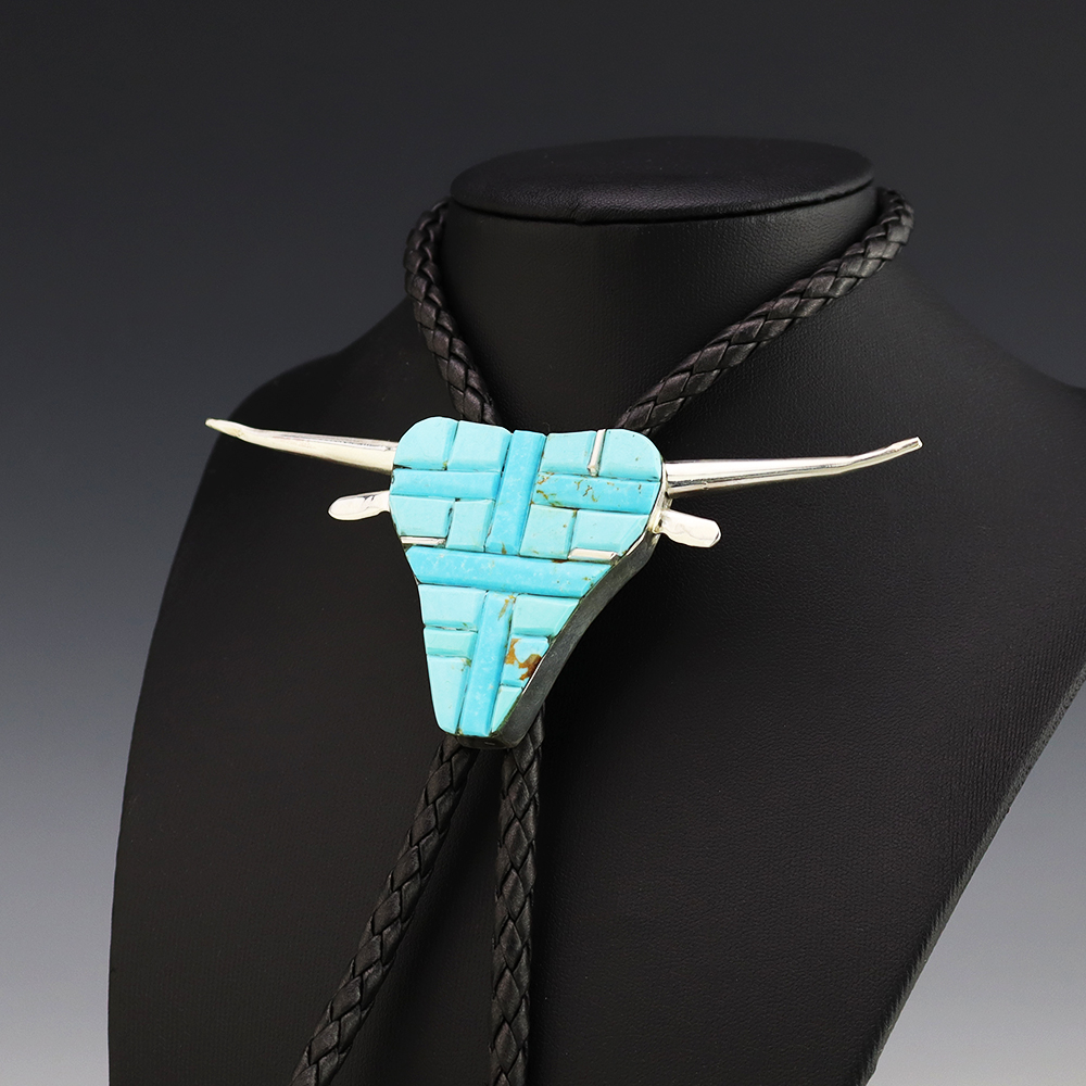 The Navajos began working with silver in the 19th century, and began making things like buckles, bridles, buttons, rings, canteens, hollow beads, earrings, crescent-shaped pendants (called “najas”), bracelets, crosses, powder chargers, tobacco canteens, and conchos (for belts). Their silversmithing skills has evolved and changed throughout the years, and in about 1880 Navajo silversmiths started to set turquoise in their silver work. Traditionally, Navajo artists worked with jewelry techniques like repousee and stamp work, but today they explored in other Native American jewelry making techniques like Zuni inlay work and Hopi overlay work.