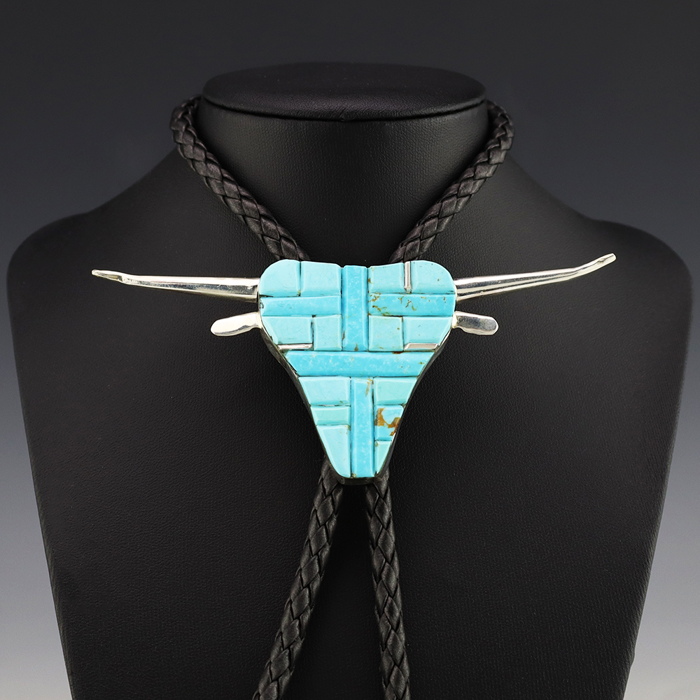 The Navajos began working with silver in the 19th century, and began making things like buckles, bridles, buttons, rings, canteens, hollow beads, earrings, crescent-shaped pendants (called “najas”), bracelets, crosses, powder chargers, tobacco canteens, and conchos (for belts). Their silversmithing skills has evolved and changed throughout the years, and in about 1880 Navajo silversmiths started to set turquoise in their silver work. Traditionally, Navajo artists worked with jewelry techniques like repousee and stamp work, but today they explored in other Native American jewelry making techniques like Zuni inlay work and Hopi overlay work.
