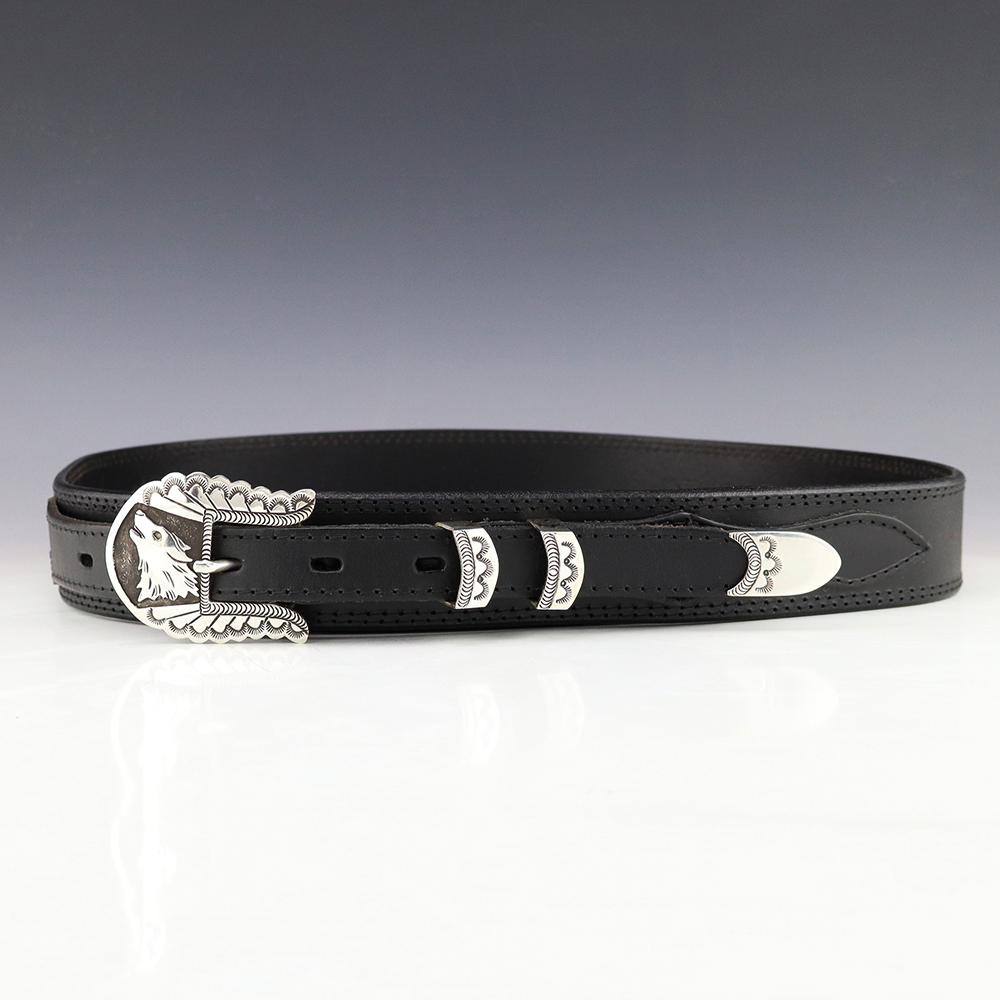 Navajo artist Lee Charley made this magnificent ranger set. Great wolf design! Made out of sterling silver. A representation of great hand made Navajo jewelry. Weighs 50 grams. Fits a 3/4” belt. (Belt not included) Signed
