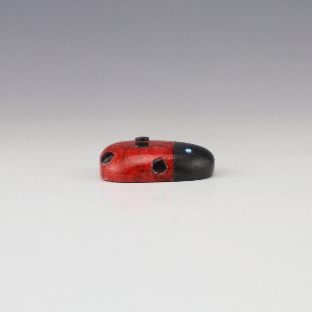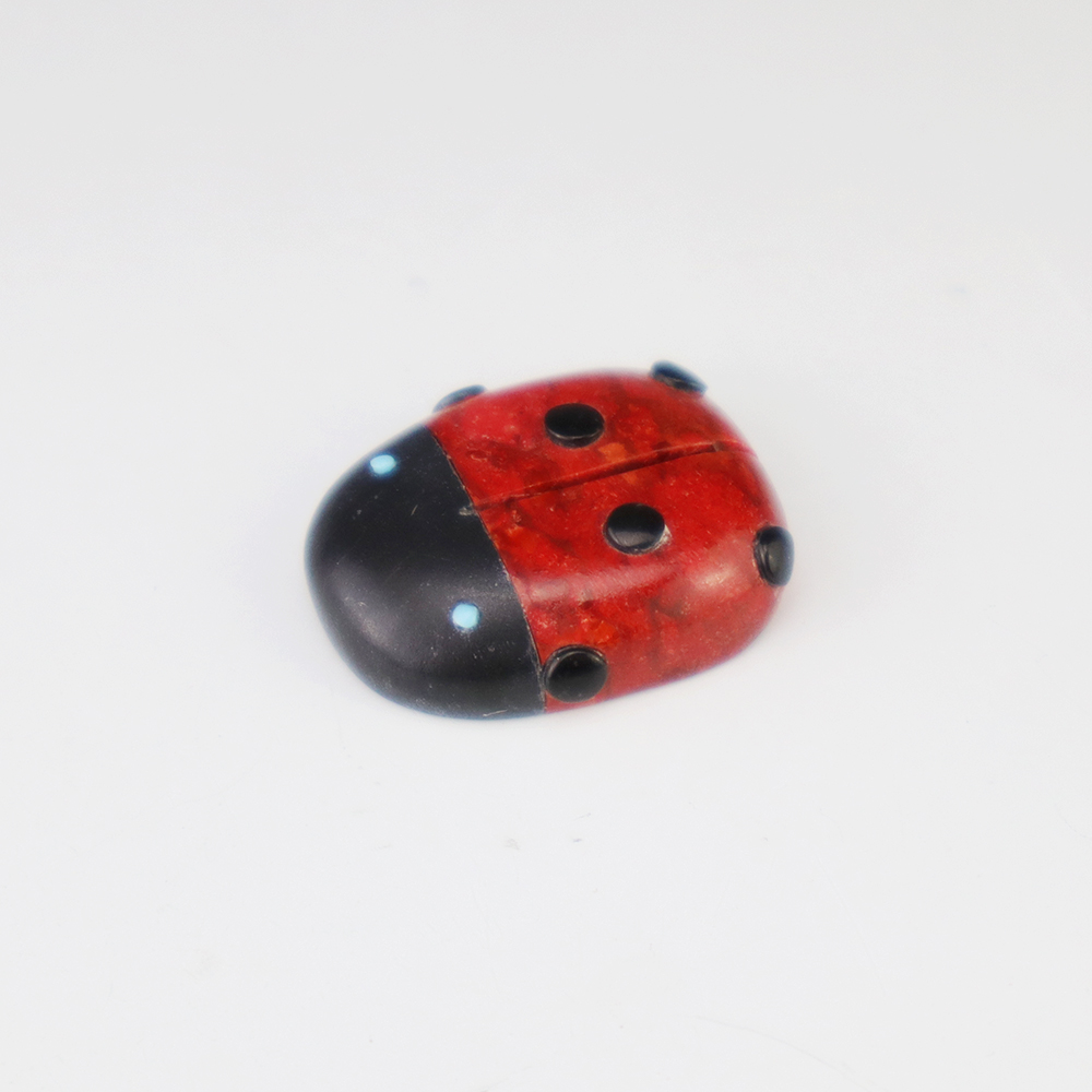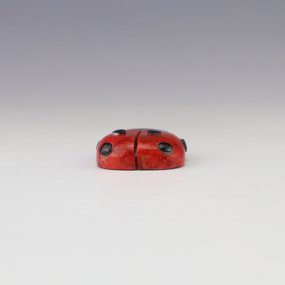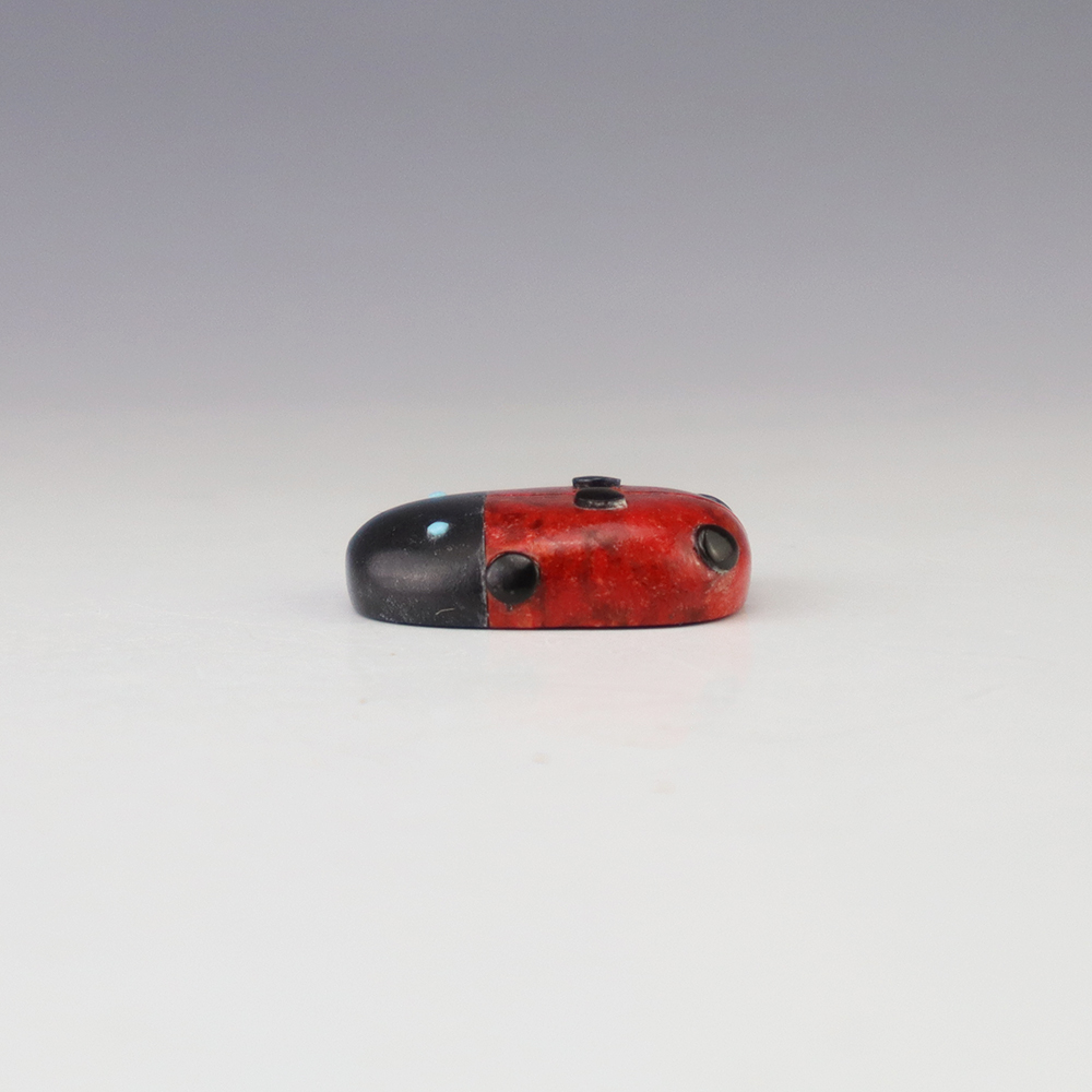 Zuni fetish artist Reynold Lunasee hand crafted this stellar Lady Bug out of Apple Coral, Turquoise, and Jet. A great addition to your Native American or Zuni fetish collection. Signed