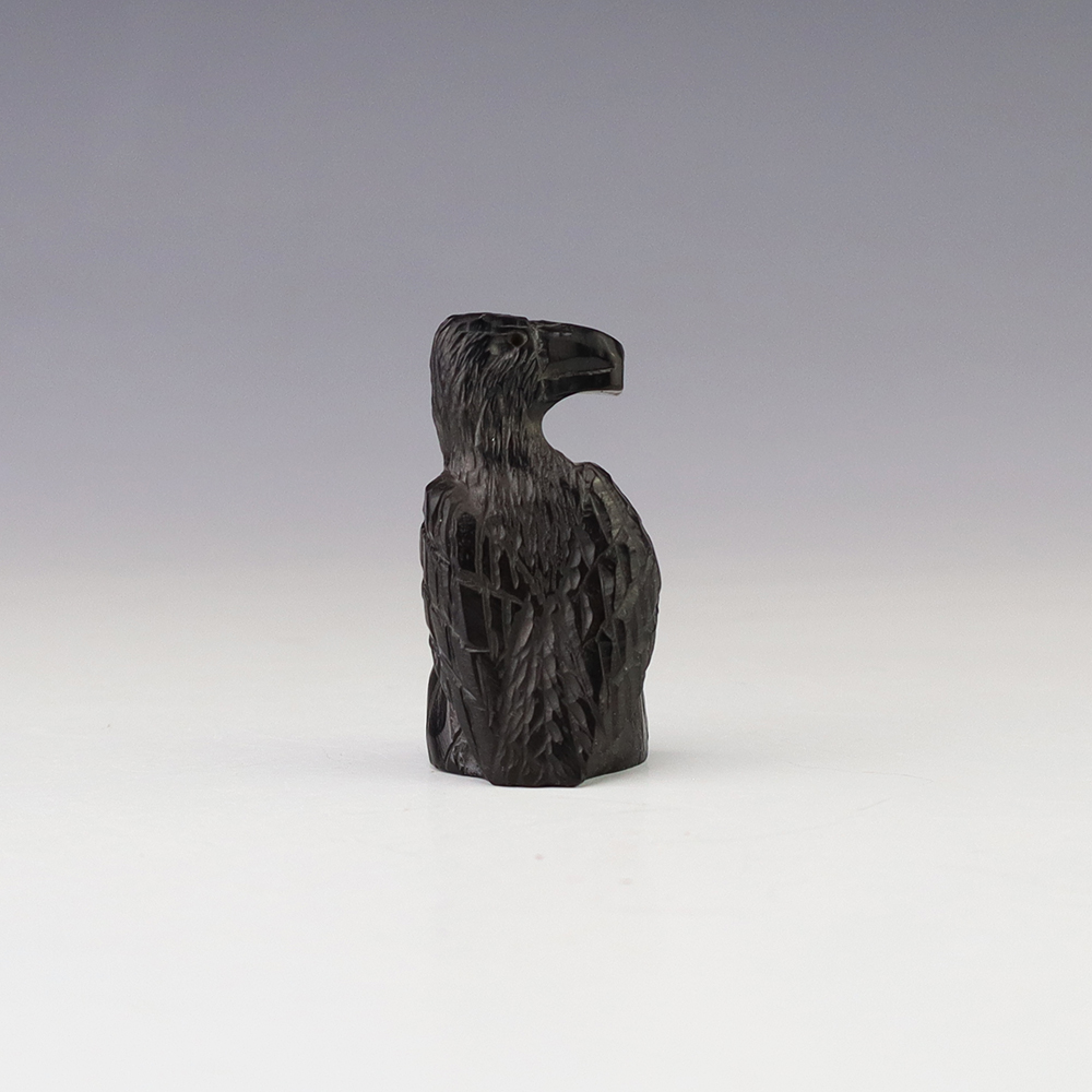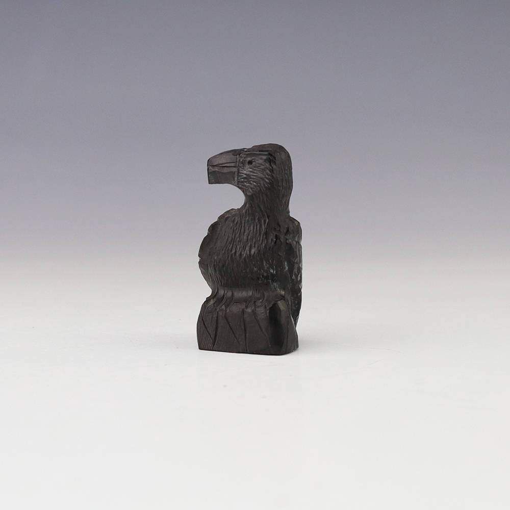 Zuni fetish artist Chris Peina hand crafted this stellar raven out of Jet. The raven represents magic, transformation, and a change in consciousness. He also is the messenger of mystery, and he helps guide us through the darkest of times. A great addition to your Native American or Zuni fetish collection. Signed
