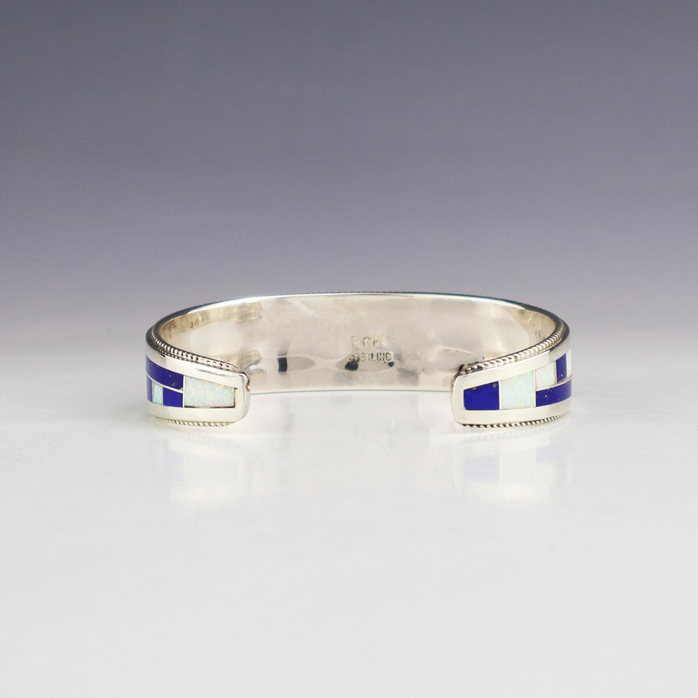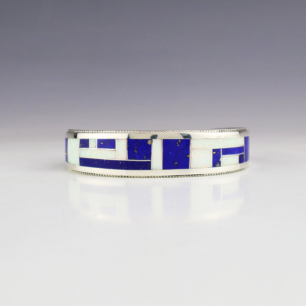 NATIVE AMERICAN ZUNI STERLING SILVER & INLAY BRACELET BY GLENDIS TSADIASI