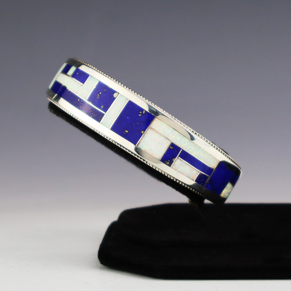 NATIVE AMERICAN ZUNI STERLING SILVER & INLAY BRACELET BY GLENDIS TSADIASI