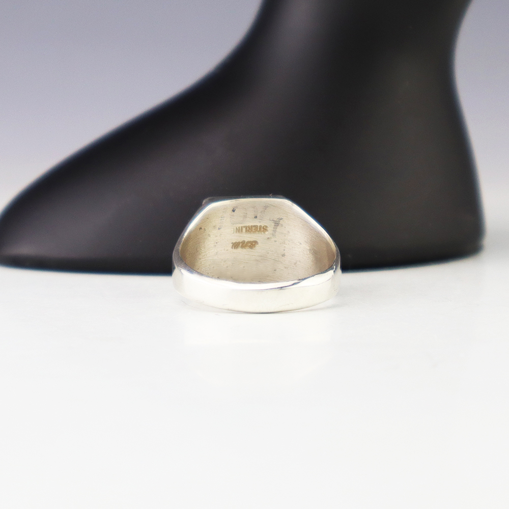 Zuni jewelry makers, Nancy and Sheldon Westika hand crafted this magnificent ring. Made out of sterling silver and inlaid with Kingman Turquoise and Jet. Zuni artists are known for their lapidary work. The Westikas have been making jewelry since the 1970’s and they are known for their fine inlay work. ...