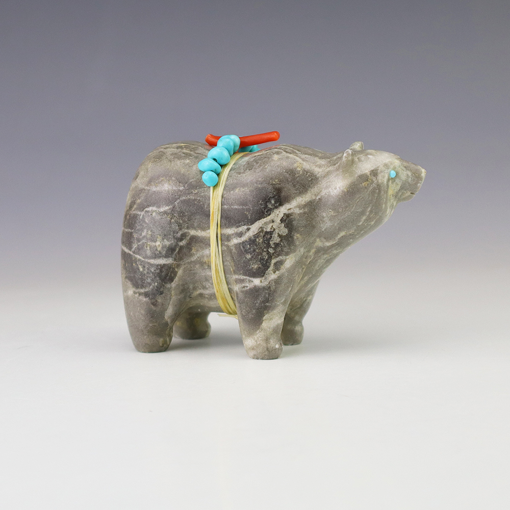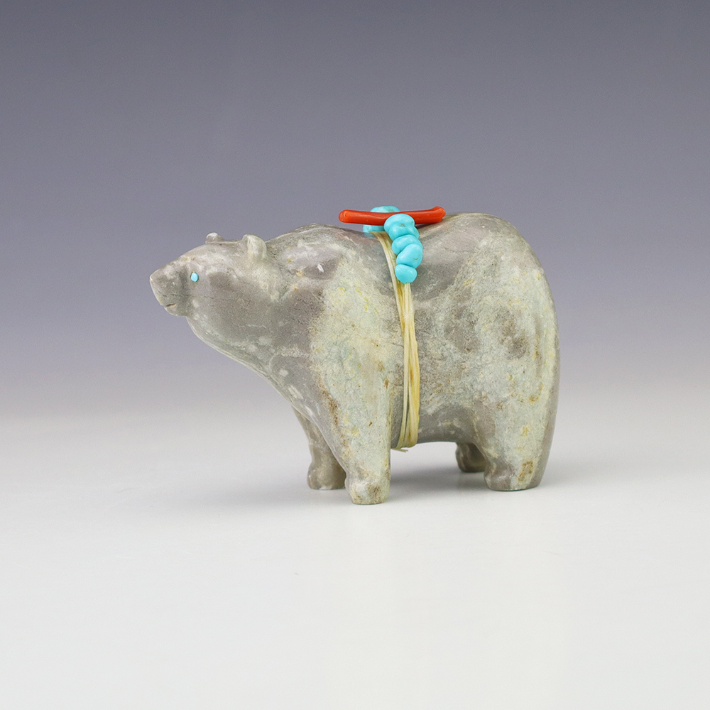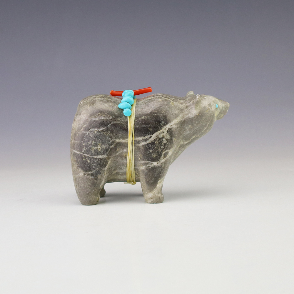 Zuni fetishes are carvings made from various materials by the Zuni people. Traditionally, fetishes served a ceremonial purpose for their creators and they represented animals and figures that were part of their culture. Today, as a form of Native American Art, they are sold to collectors worldwide. With a myriad of materials like turquoise, shell, jet, marble, serpentine, and much more, Zuni fetish carvers are able to create carvings in a style of their own.