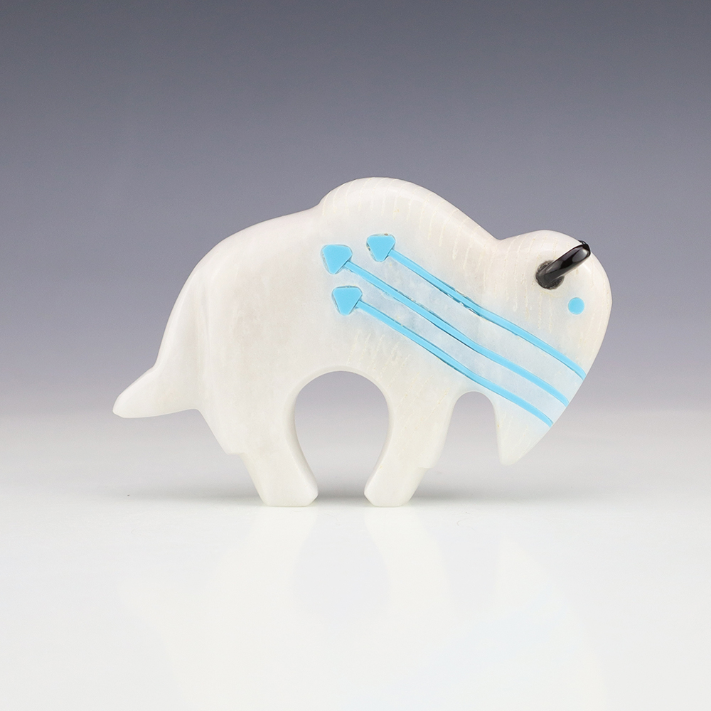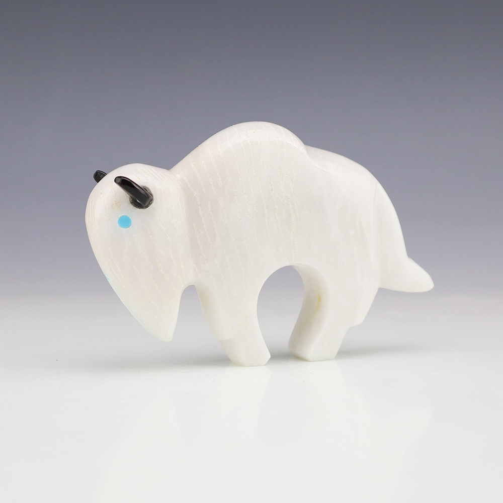 Zuni fetishes are carvings made from various materials by the Zuni people. Traditionally, fetishes served a ceremonial purpose for their creators and they represented animals and figures that were part of their culture. Today, as a form of Native American Art, they are sold to collectors worldwide. With a myriad of materials like turquoise, shell, jet, marble, serpentine, and much more, Zuni fetish carvers are able to create carvings in a style of their own.