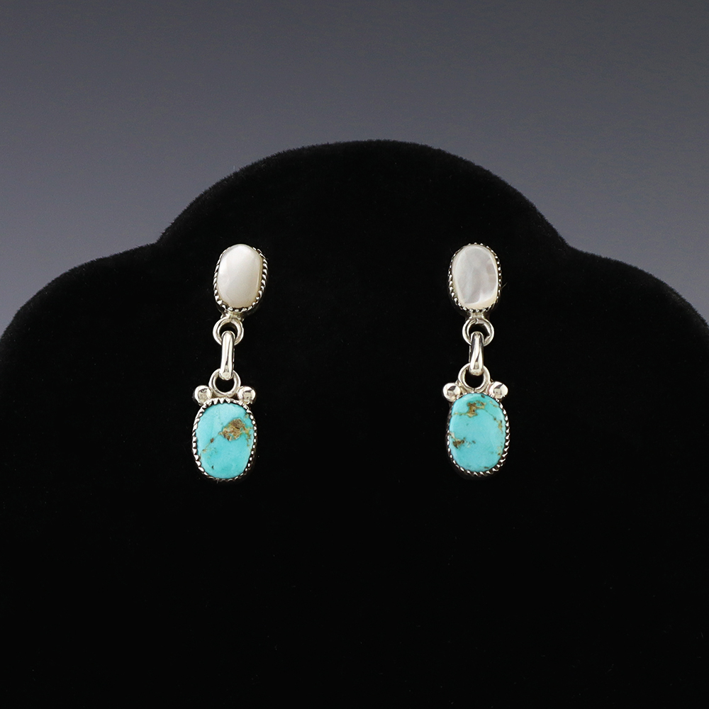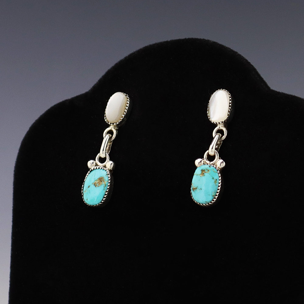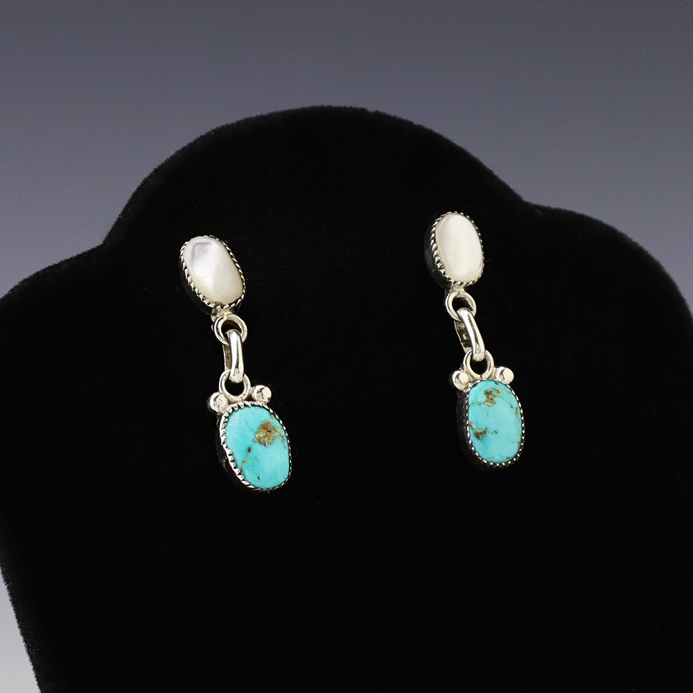 ZUNI MOTHER OF PEARL & TURQUOISE EARRINGS BY NANCY AND SHELDON WESTIKA