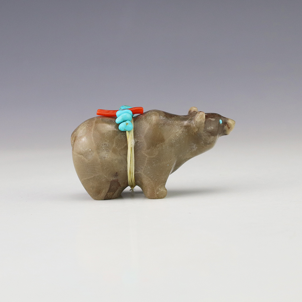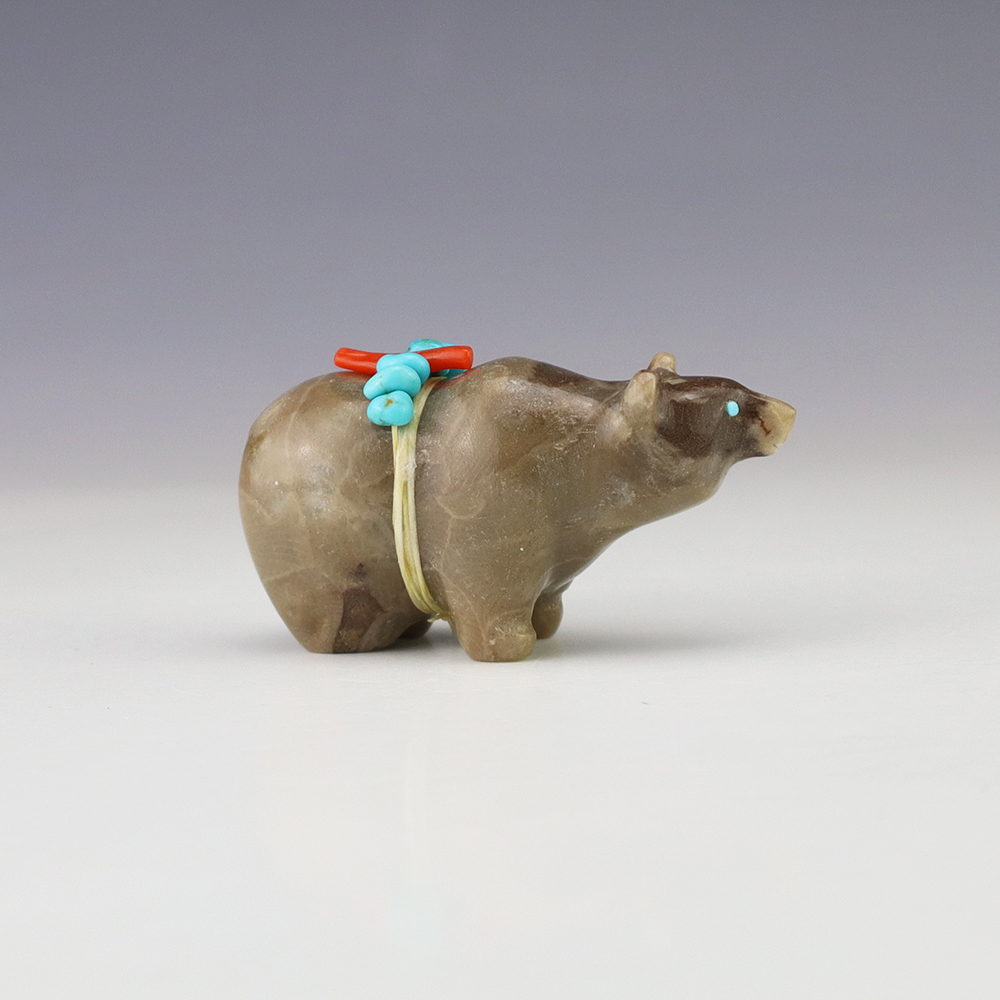 Zuni fetishes are carvings made from various materials by the Zuni people. Traditionally, fetishes served a ceremonial purpose for their creators and they represented animals and figures that were part of their culture. Today, as a form of Native American Art, they are sold to collectors worldwide. With a myriad of materials like turquoise, shell, jet, marble, serpentine, and much more, Zuni fetish carvers are able to create carvings in a style of their own.