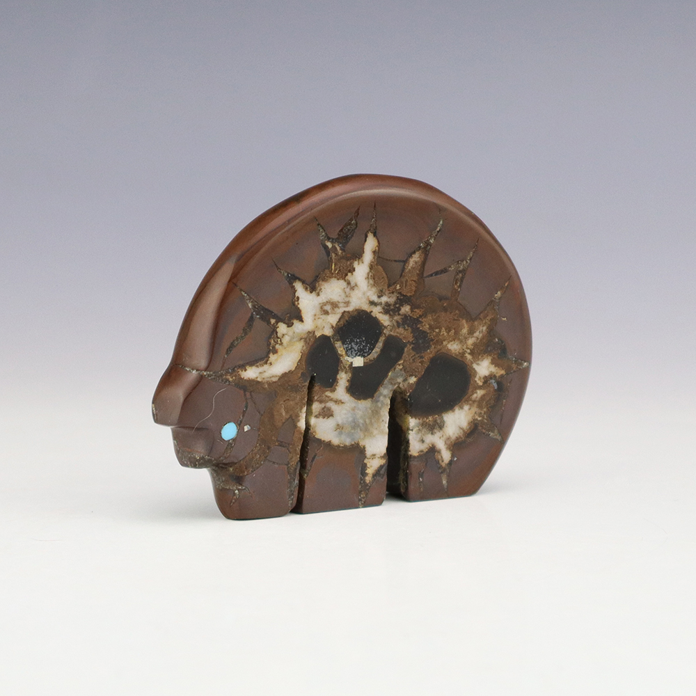 Zuni fetishes are carvings made from various materials by the Zuni people. Traditionally, fetishes served a ceremonial purpose for their creators and they represented animals and figures that were part of their culture. Today, as a form of Native American Art, they are sold to collectors worldwide. With a myriad of materials like turquoise, shell, jet, marble, serpentine, and much more, Zuni fetish carvers are able to create carvings in a style of their own.