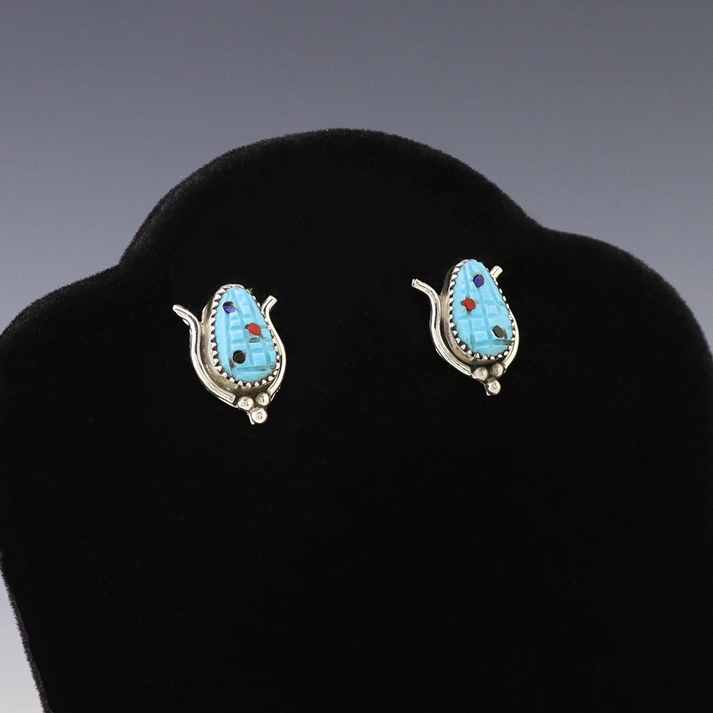 NATIVE AMERICAN ZUNI SERPENTINE EARRINGS BY DIANE LONJOSE