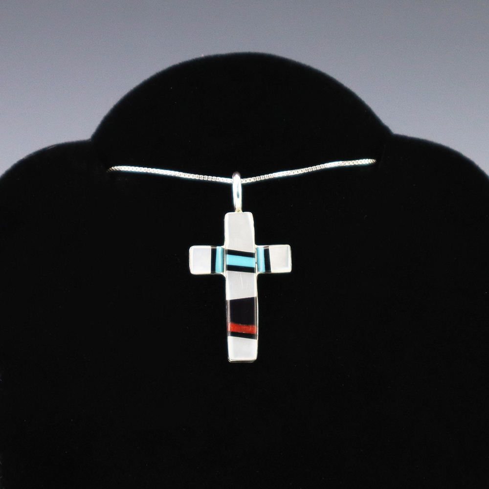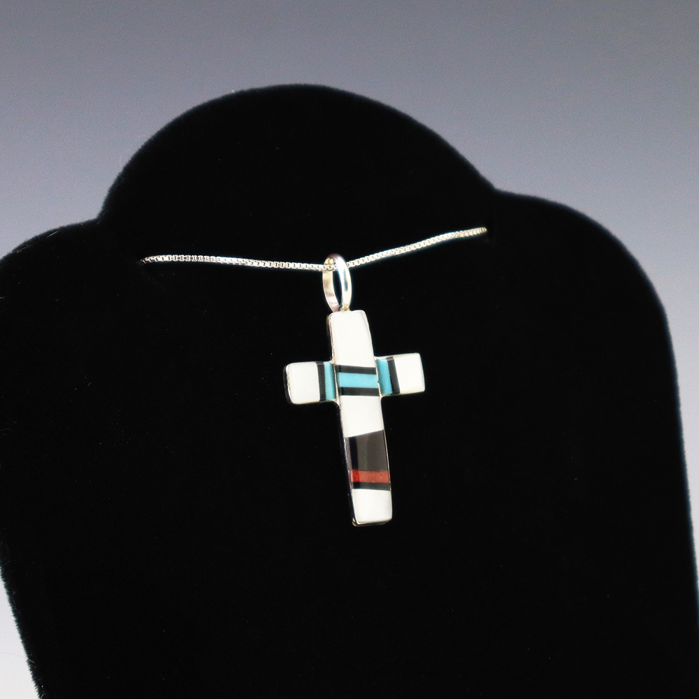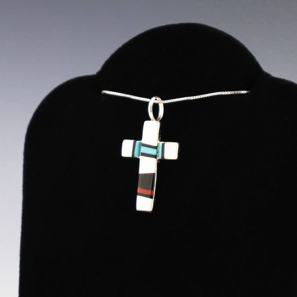 NATIVE AMERICAN ZUNI INLAY PENDANT BY LESLIE & GLADYS LAMY