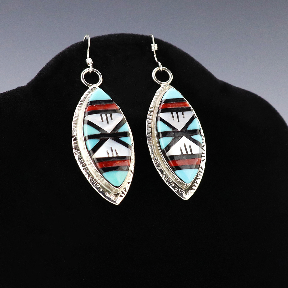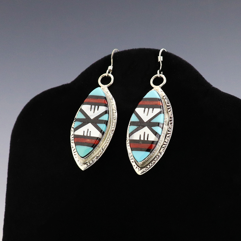 NATIVE AMERICAN ZUNI TURQUOISE EARRINGS BY NANCY & SHELDON WESTIKA