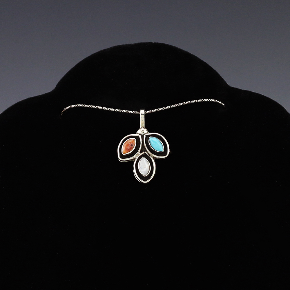 NATIVE AMERICAN ZUNI INLAY PENDANT BY LESLIE & GLADYS LAMY