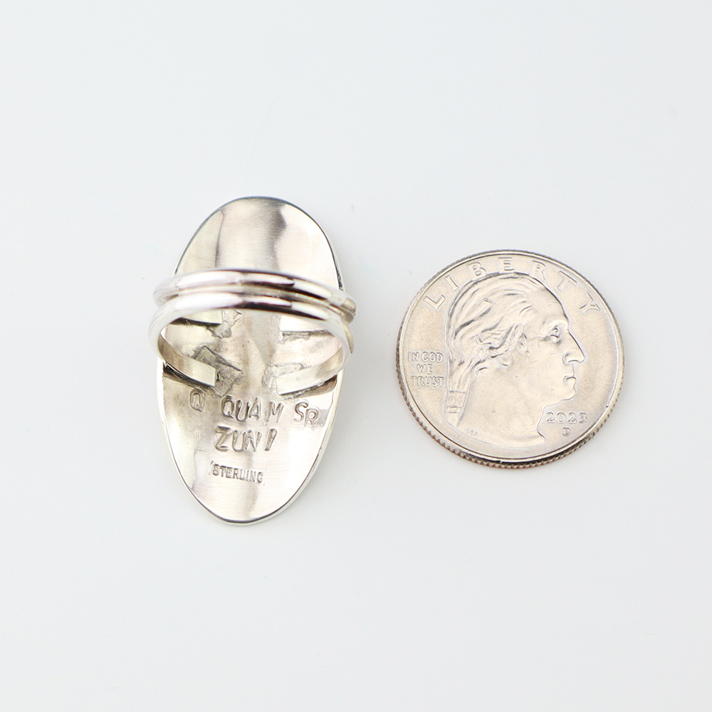 Zuni jewelry makers, Nancy and Sheldon Westika hand crafted this magnificent ring. Made out of sterling silver and inlaid with Kingman Turquoise and Jet. Zuni artists are known for their lapidary work. The Westikas have been making jewelry since the 1970’s and they are known for their fine inlay work. ...