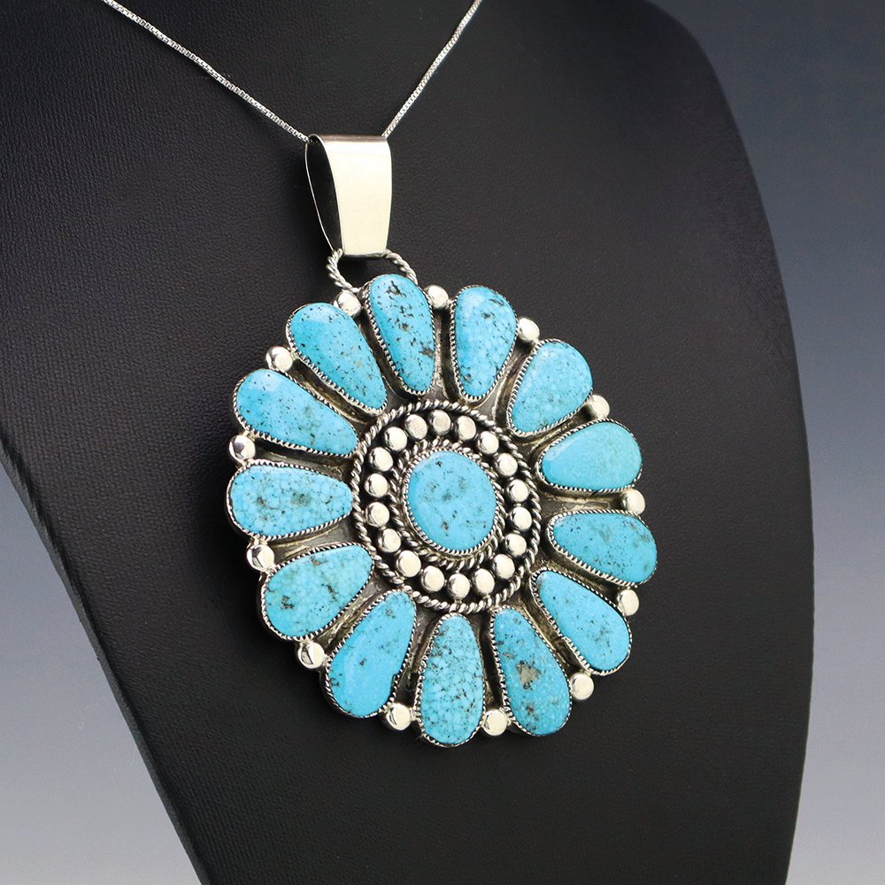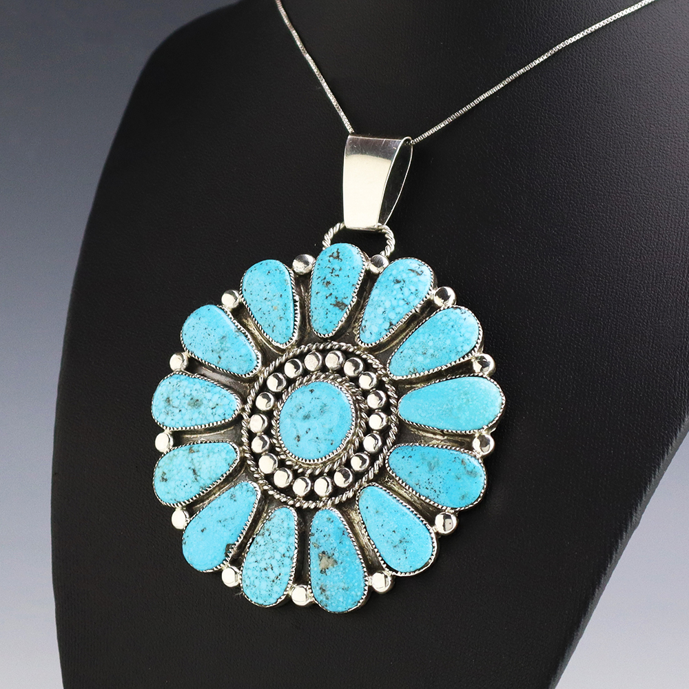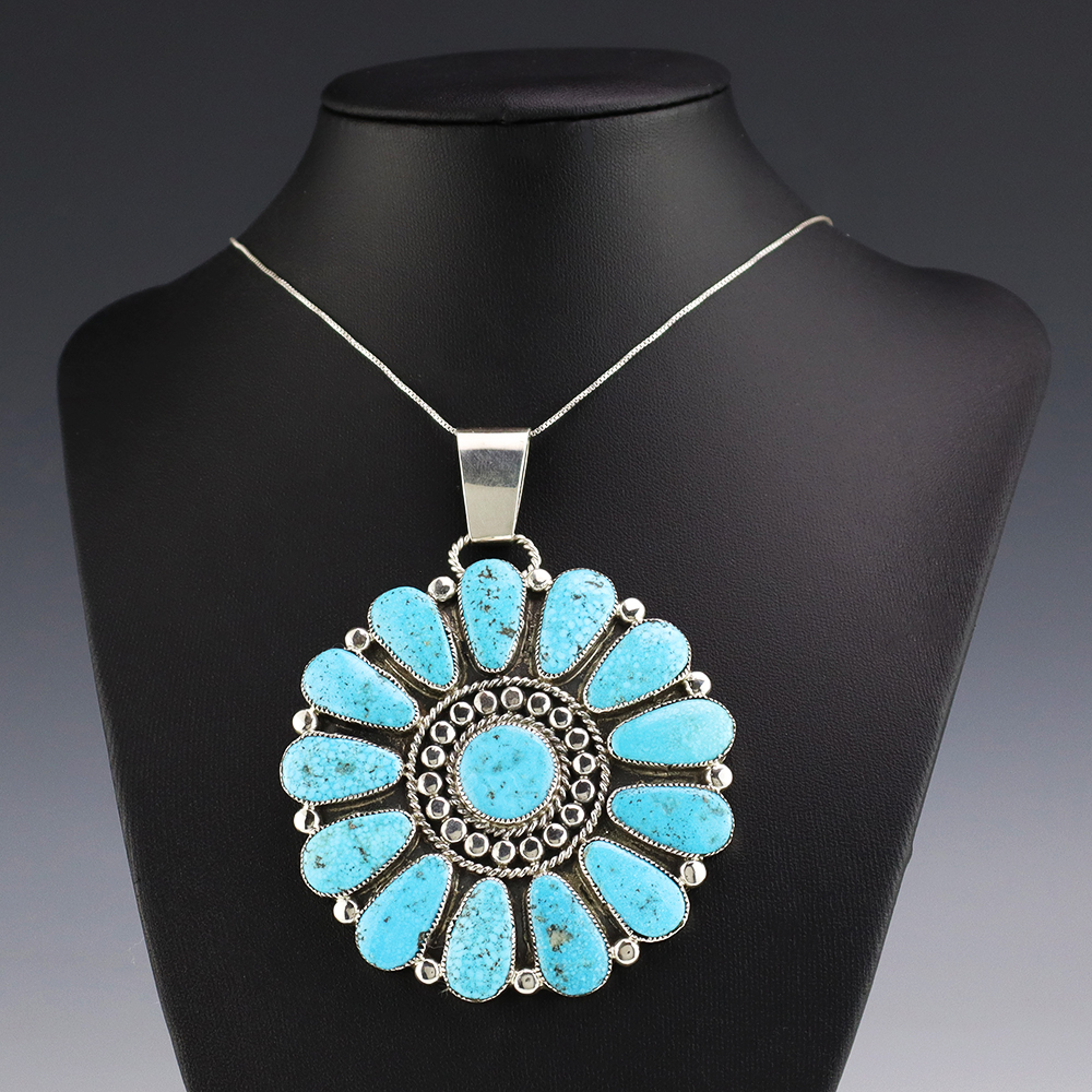 NATIVE AMERICAN NAVAJO STERLING SILVER & TURQUOISE NECKLACE BY GARY CUSTER