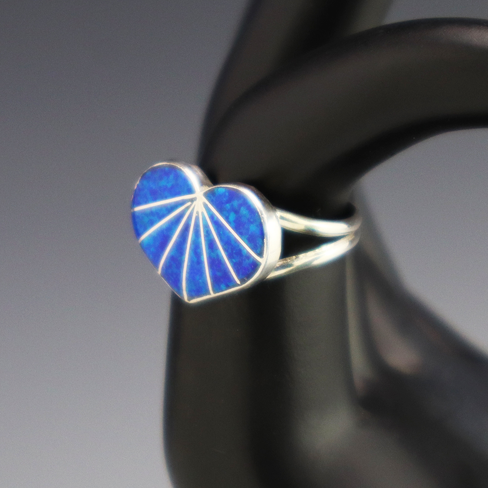 Fine channel inlay work. Zuni jewelry makers, Nancy and Sheldon Westika hand crafted this stunning ring. Sterling silver and inlaid with natural Lapis. Zuni artists are known for their lapidary work. The Westikas have been making jewelry since the 1970’s and they are known for their fine inlay work. Signed. ...