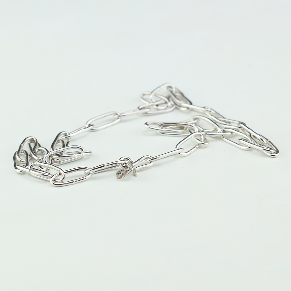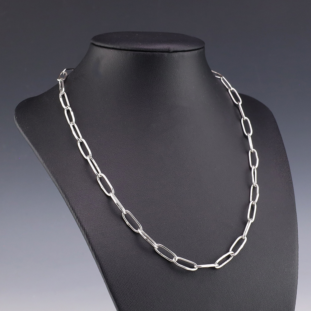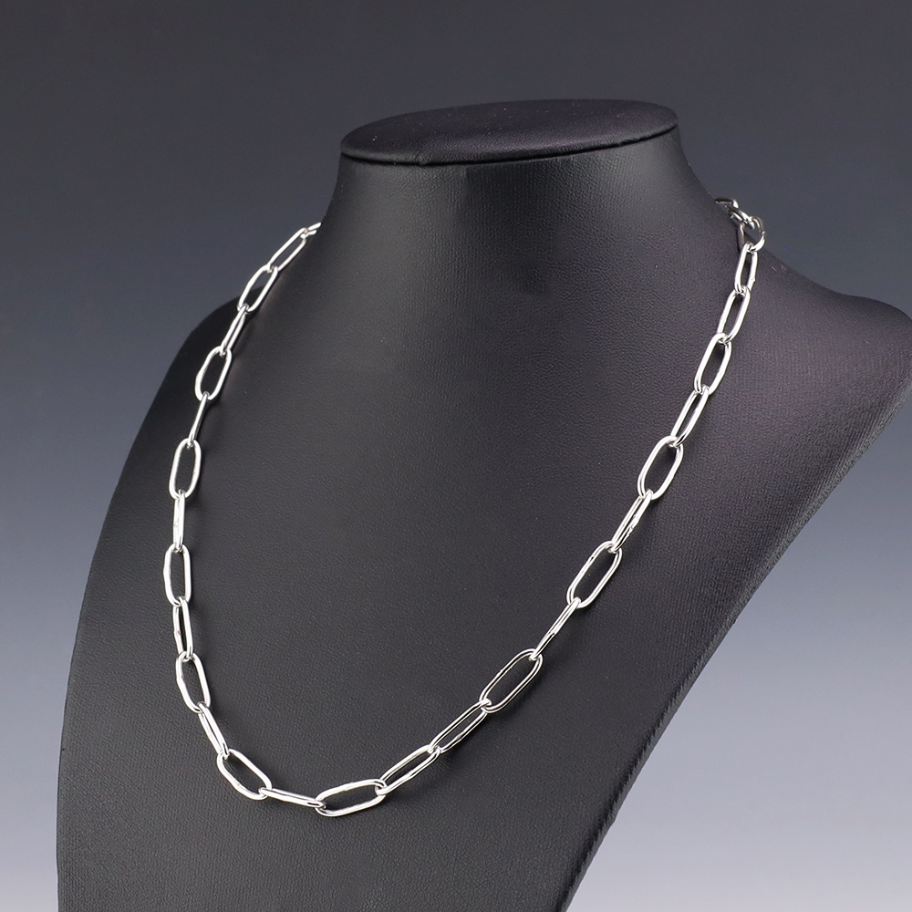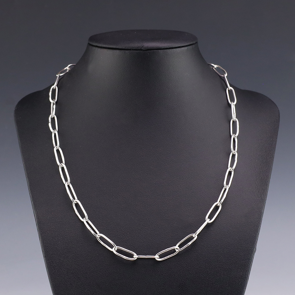 Zuni artist Carlo Lonjose made this fabulous paperclip chain. Sterling silver and 16 gauge round wire. An exquisite statement piece that you will enjoy for many years. The necklace weighs 12 grams. Signed