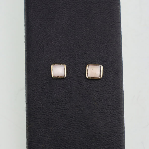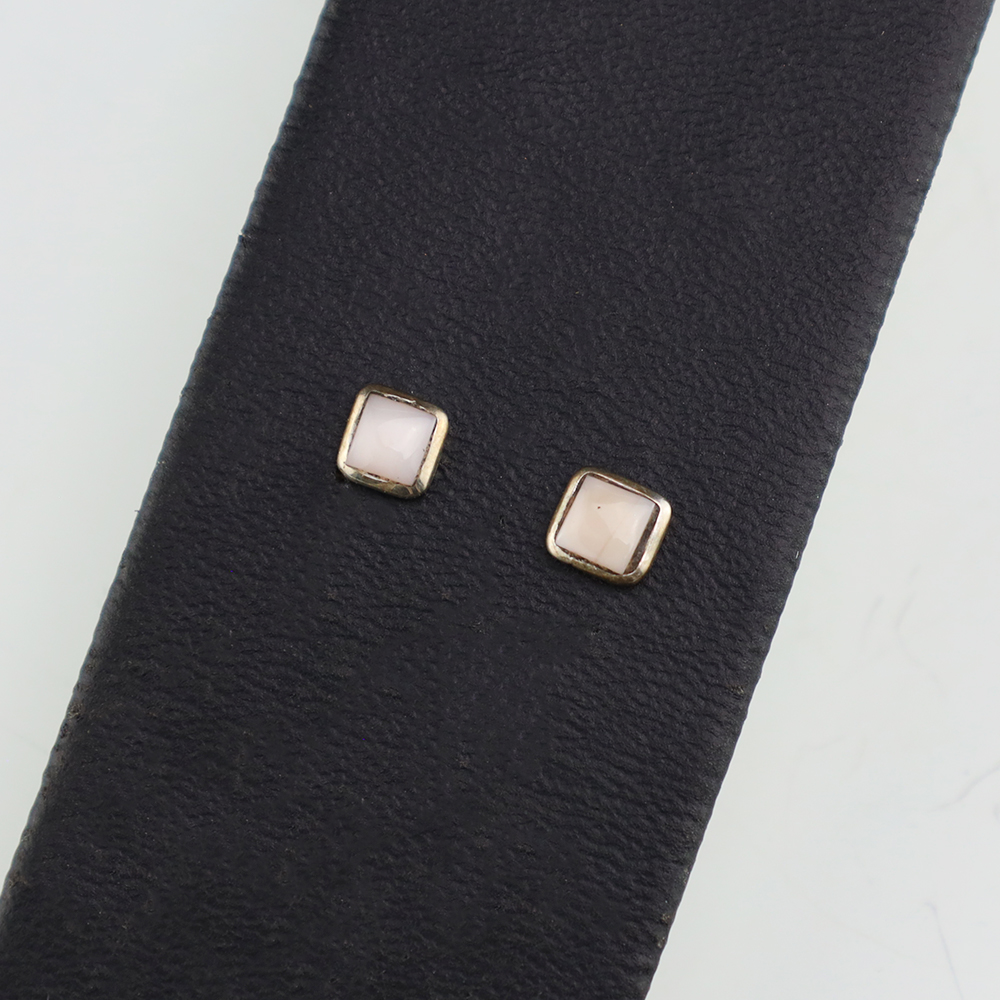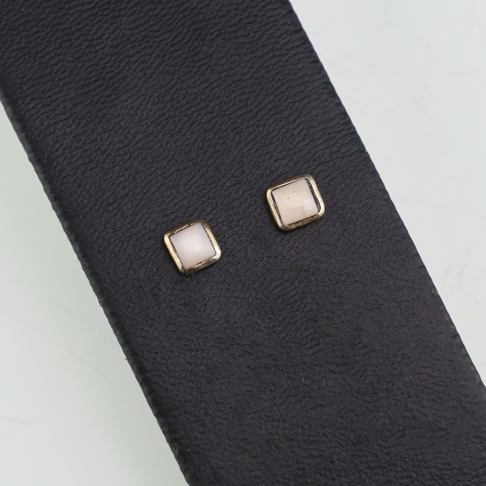 Each earring features Pink Mussel inlaid into a sterling silver setting. Hand made by Zuni artist Marchelle Qualo. These gorgeous earrings will become a versatile accessory in your jewelry collection.