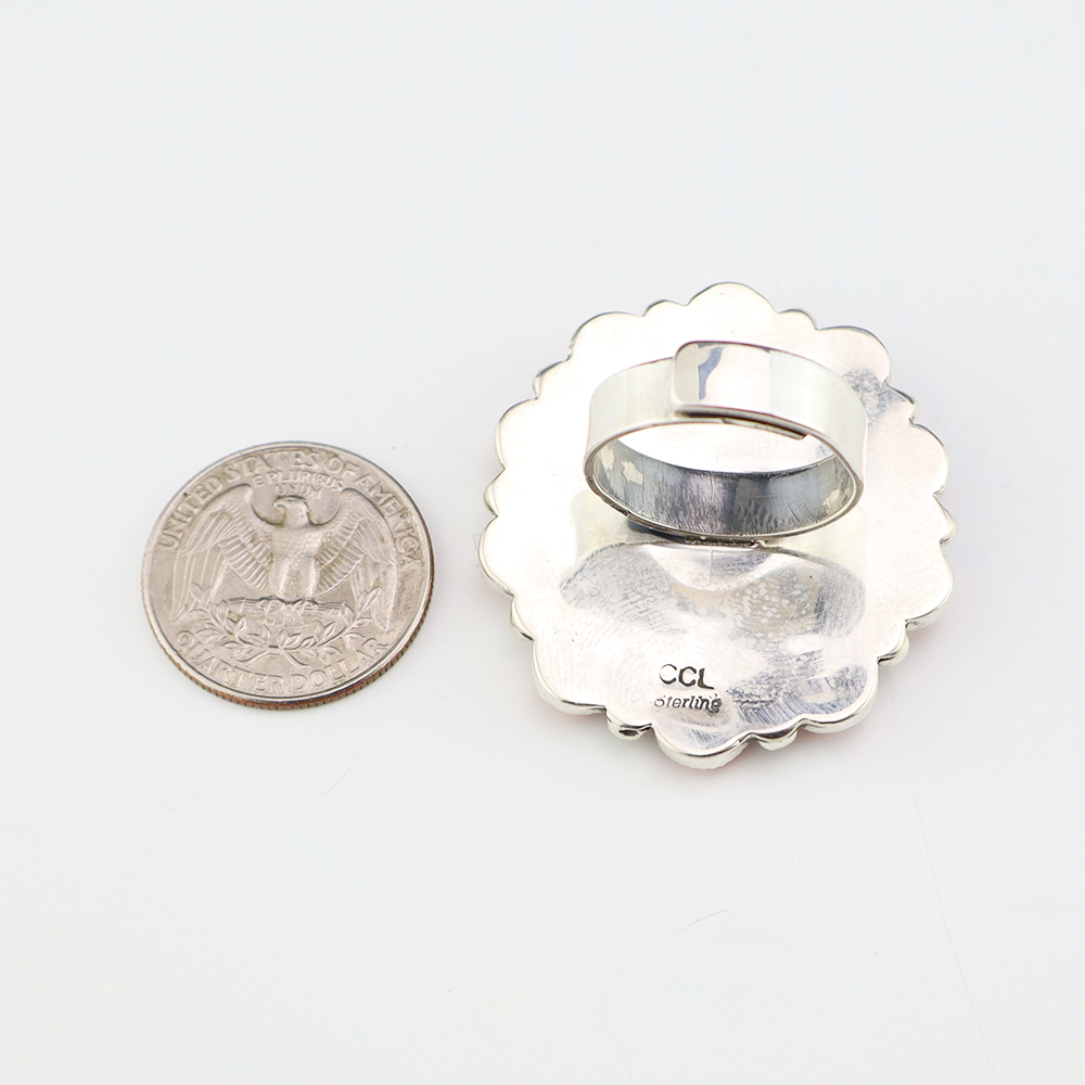 NATIVE AMERICAN TURQUOISE & JET RING BY NANCY & SHELDON WESTIKA 11 1/4