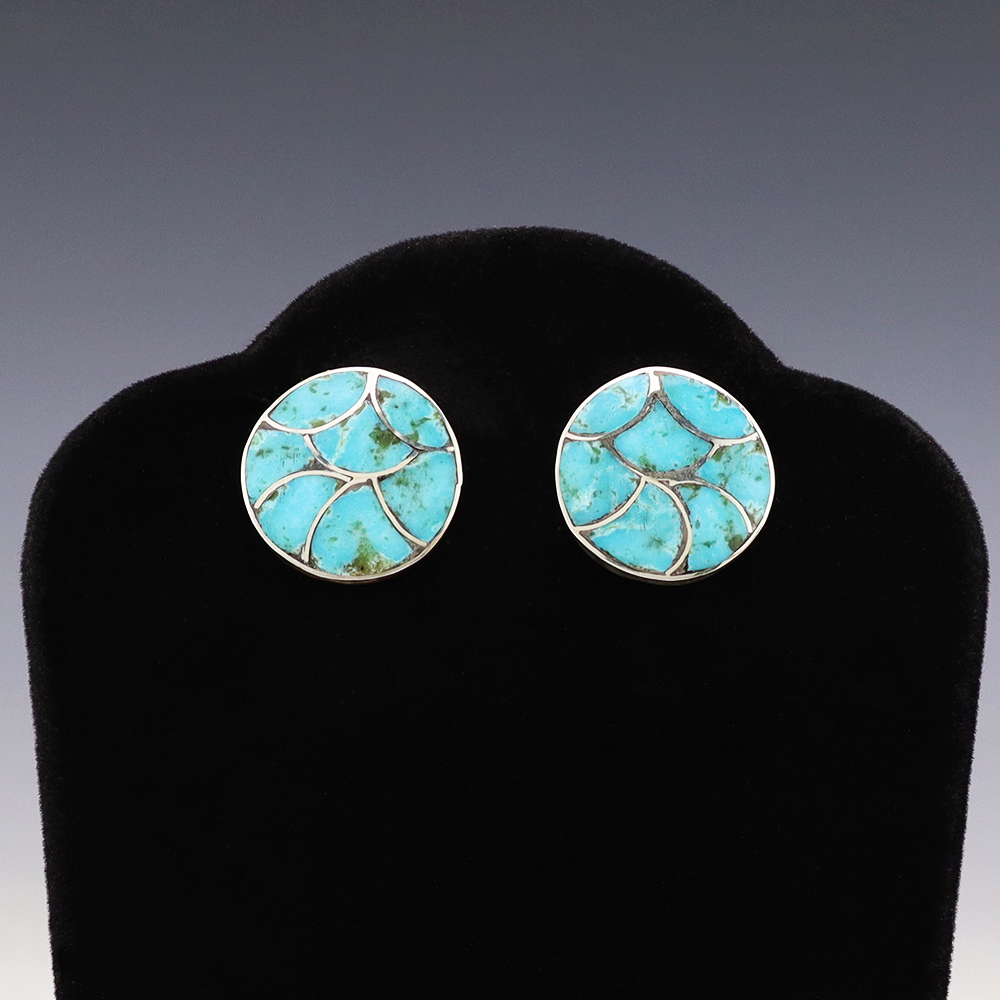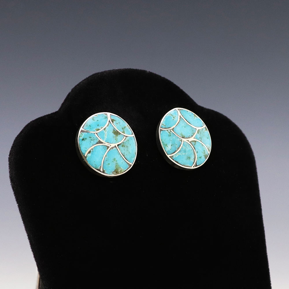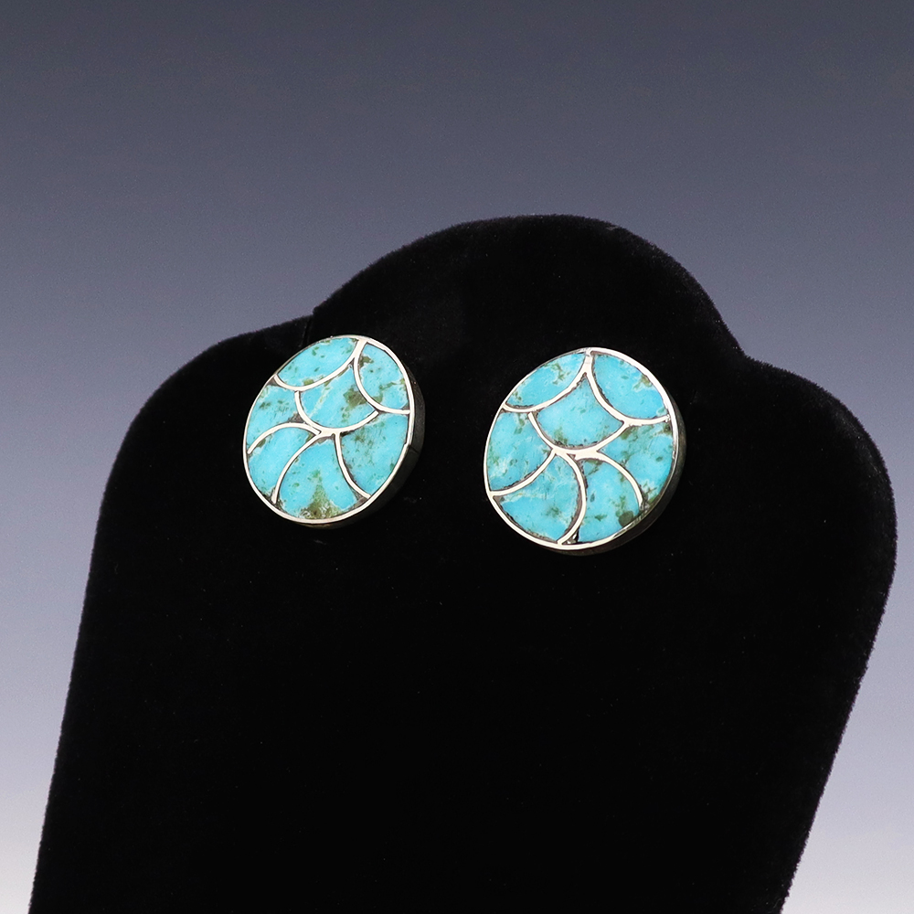 NATIVE AMERICAN ZUNI TURQUOISE EARRINGS BY NANCY & SHELDON WESTIKA