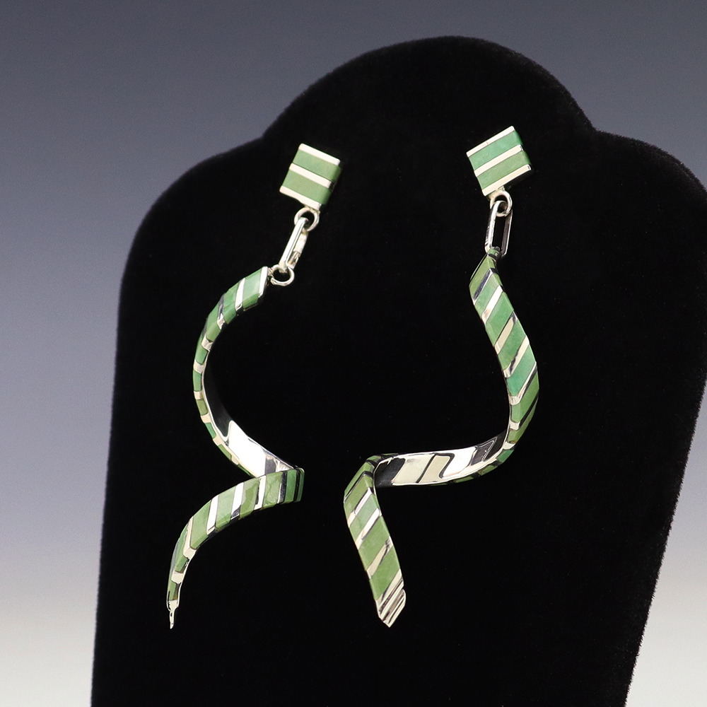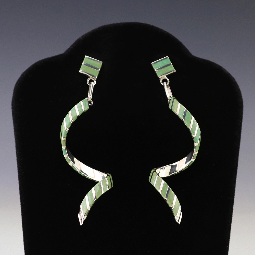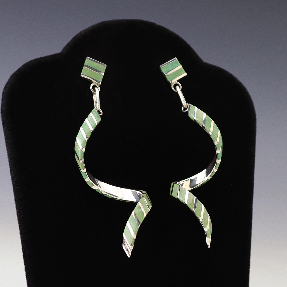 Magnificent cufflinks that feature Jet and Red Line Obsidian inlaid in a sterling silver setting. Hand made with high quality craftsmanship that is a great representation of the traditional inlay work. Hand made by Zuni jewelers Nancy and Sheldon Westika. The Westikas have been making jewelry since the 1970’s and...