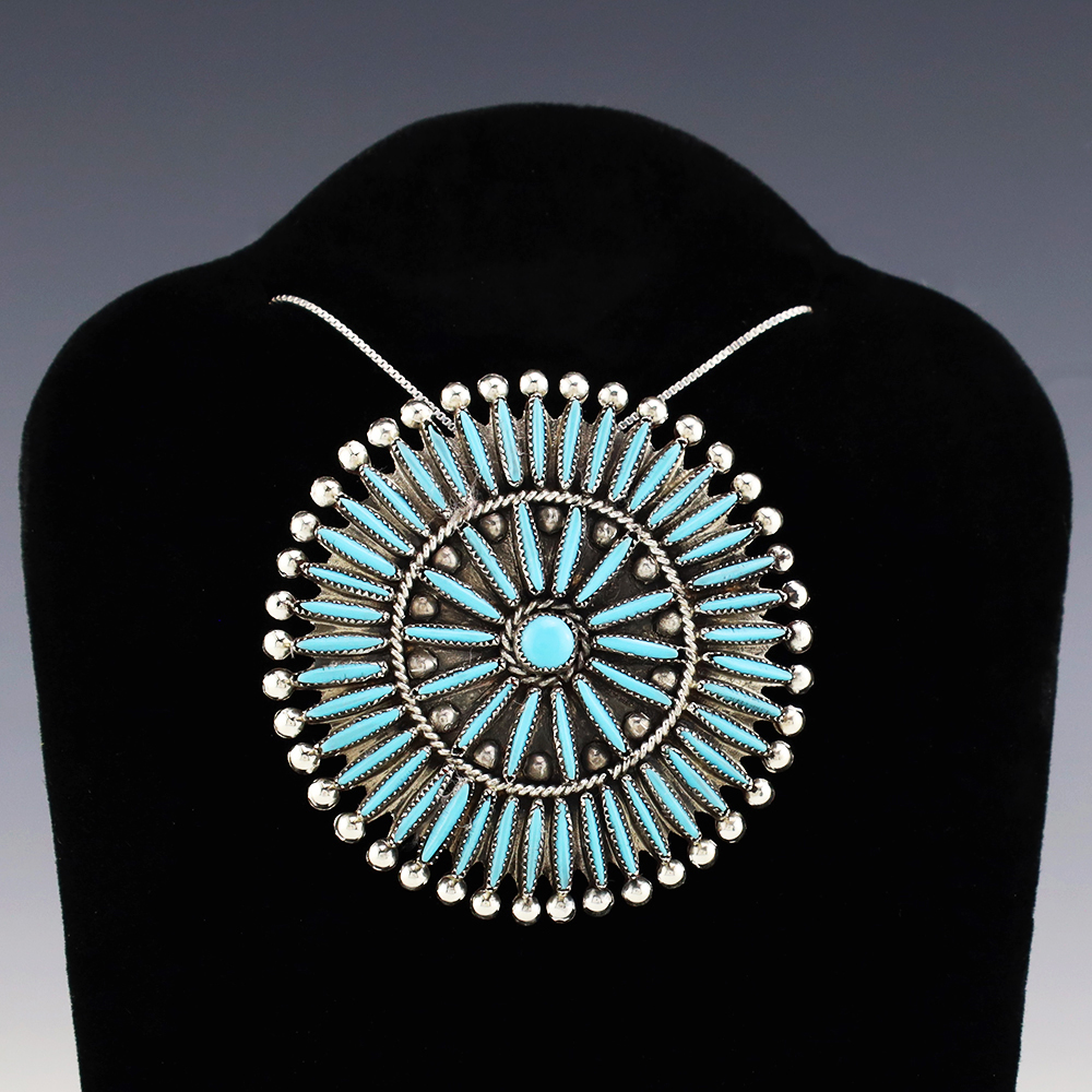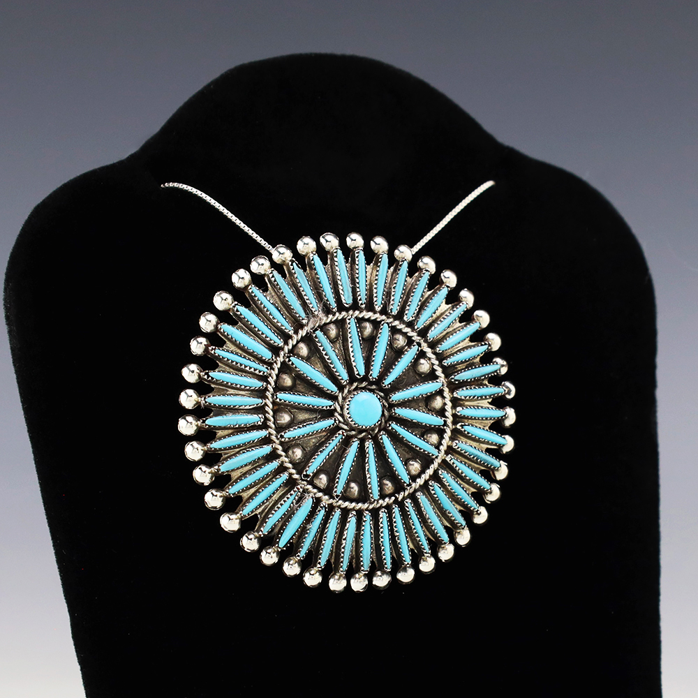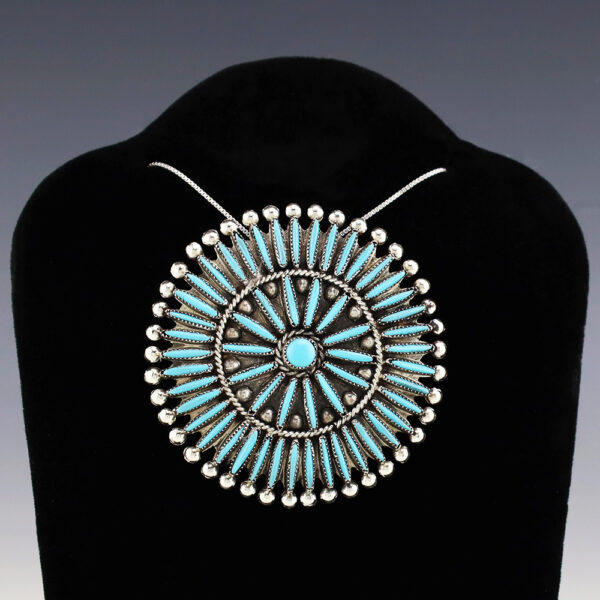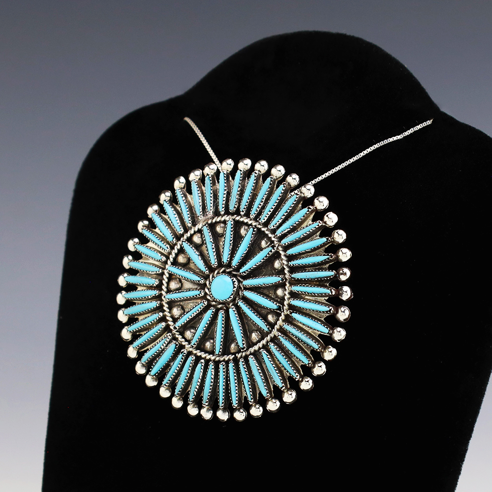 Zuni Pueblo is the largest pueblo in New Mexico, and because of its location, Zuni is the most traditional. Continuing to make jewelry, fetishes, and pottery, most of the people of Zuni are artists. Zuni jewelry makers are known for lapidary skills including inlay, needlepoint, and petit point work.