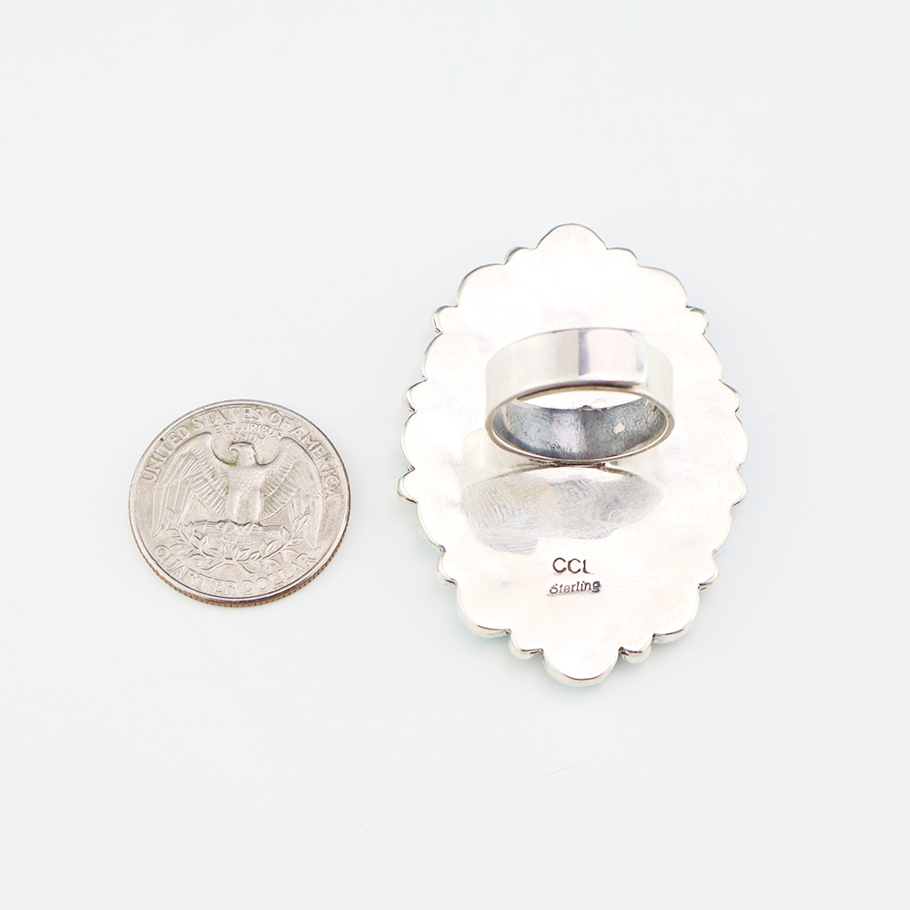NATIVE AMERICAN TURQUOISE & JET RING BY NANCY & SHELDON WESTIKA 11 1/4