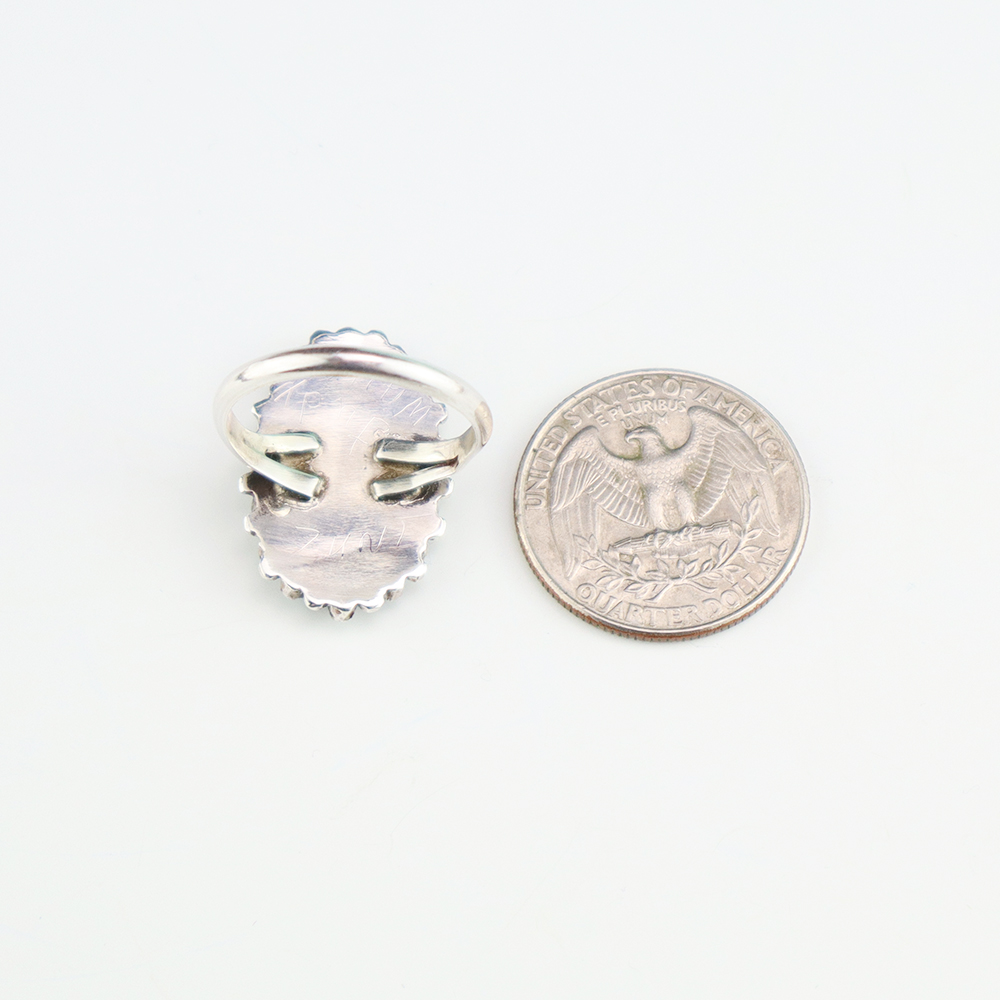 NATIVE AMERICAN TURQUOISE & JET RING BY NANCY & SHELDON WESTIKA 11 1/4