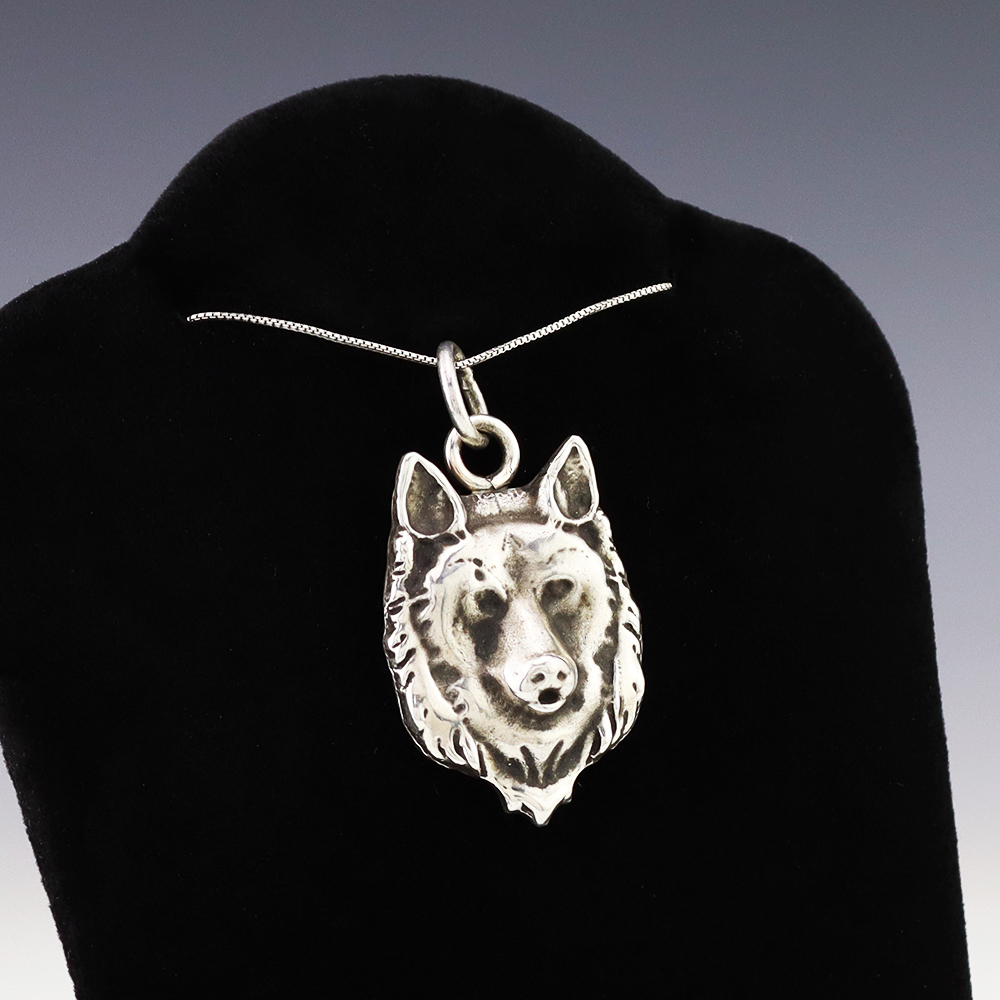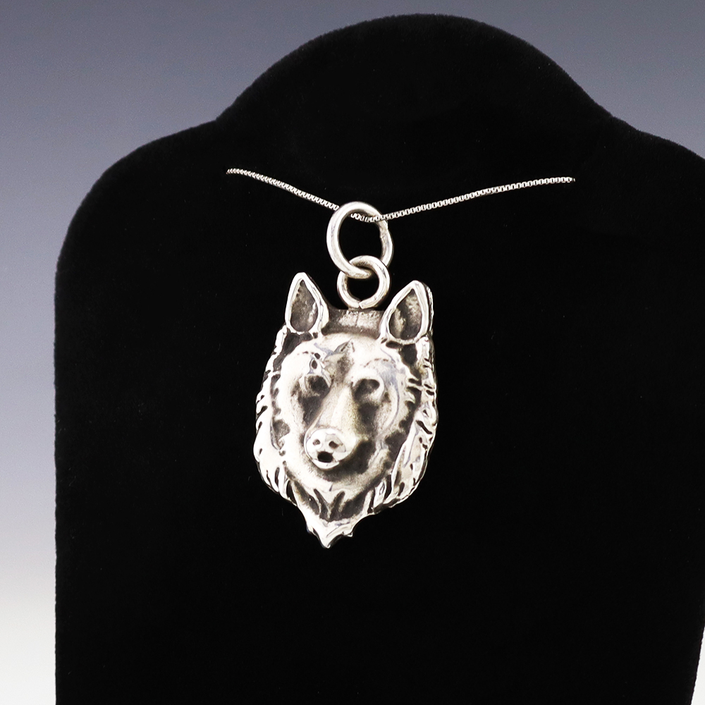 Zuni artist Virick Laweka made this wonderful wolf pendant out of sterling silver. Weighs 24 grams. (Chain not included)