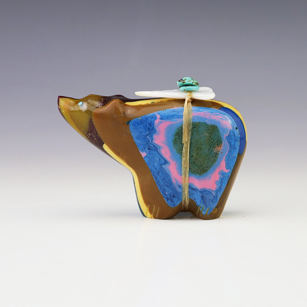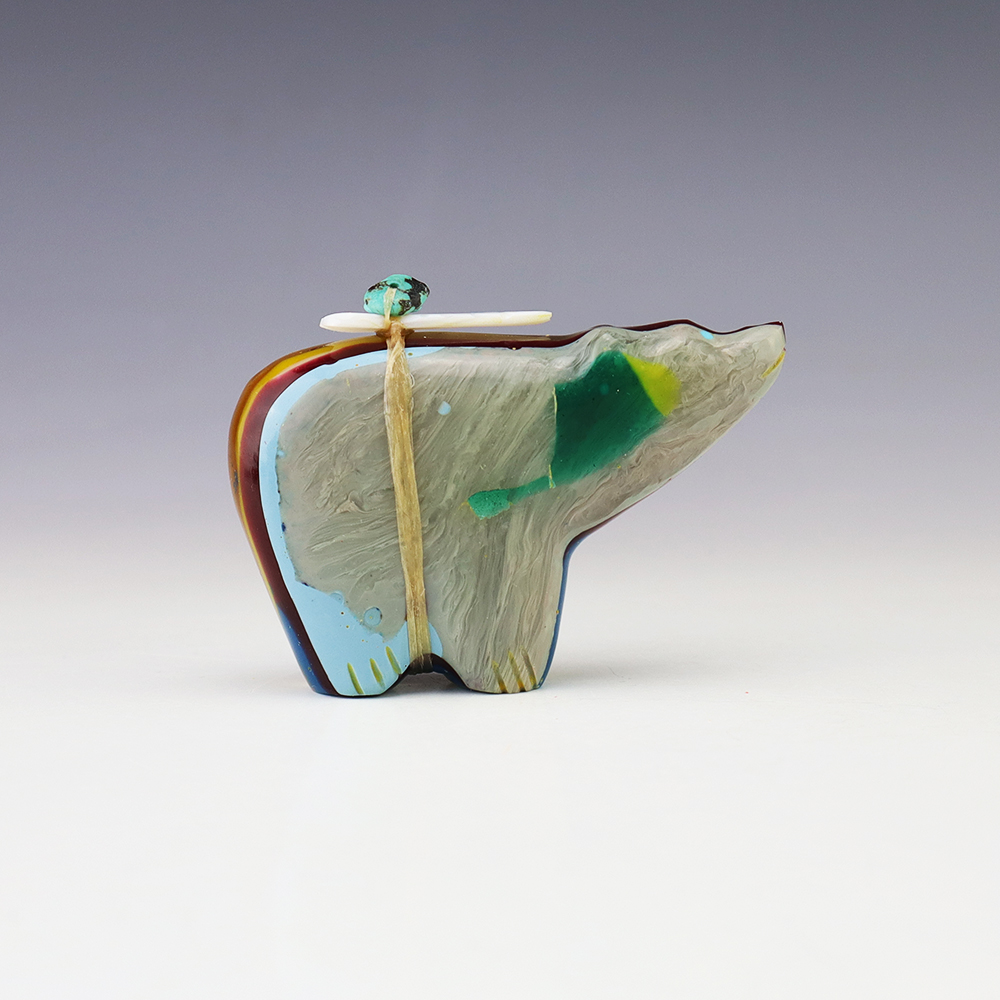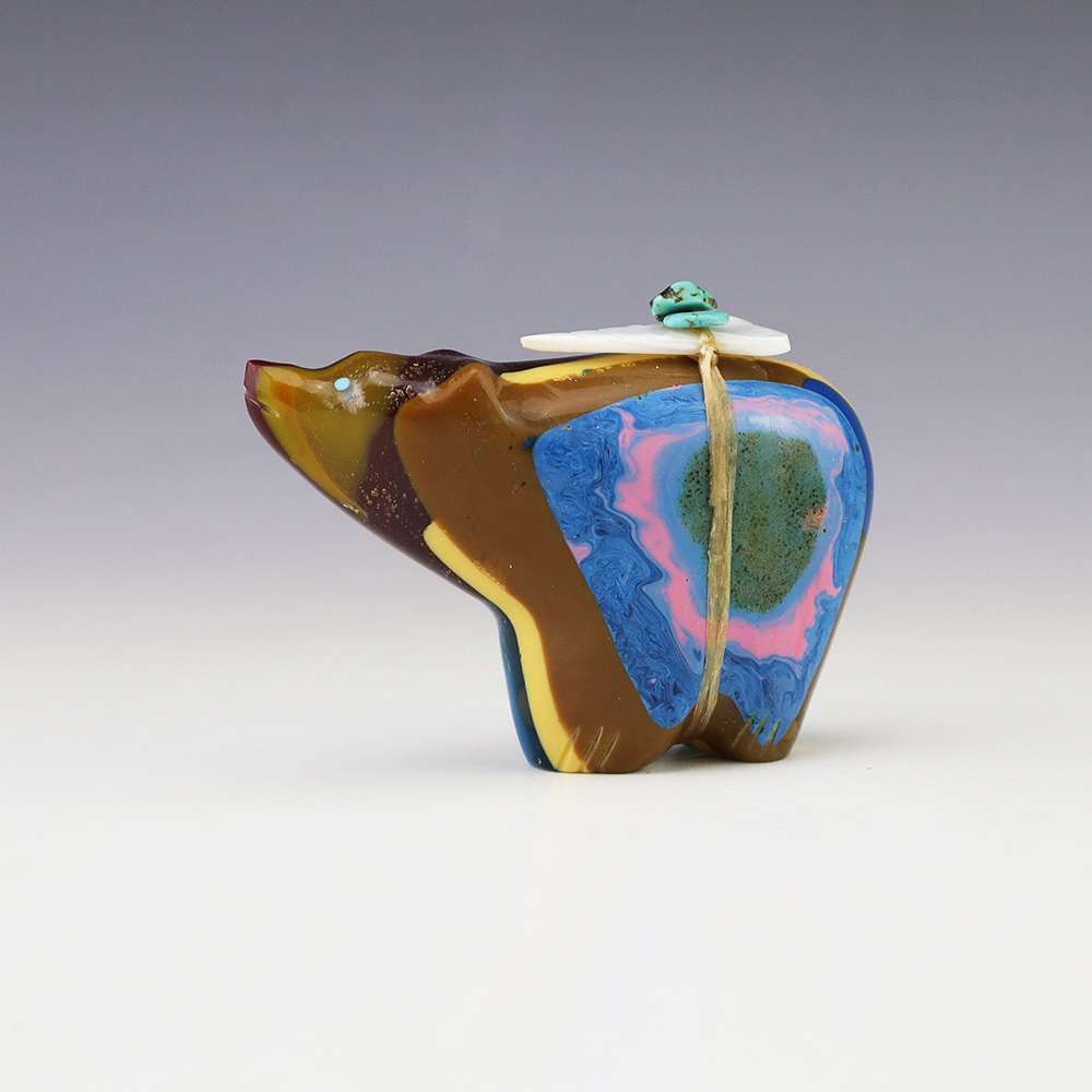 Zuni fetishes are carvings made from various materials by the Zuni people. Traditionally, fetishes served a ceremonial purpose for their creators and they represented animals and figures that were part of their culture. Today, as a form of Native American Art, they are sold to collectors worldwide. With a myriad of materials like turquoise, shell, jet, marble, serpentine, and much more, Zuni fetish carvers are able to create carvings in a style of their own.