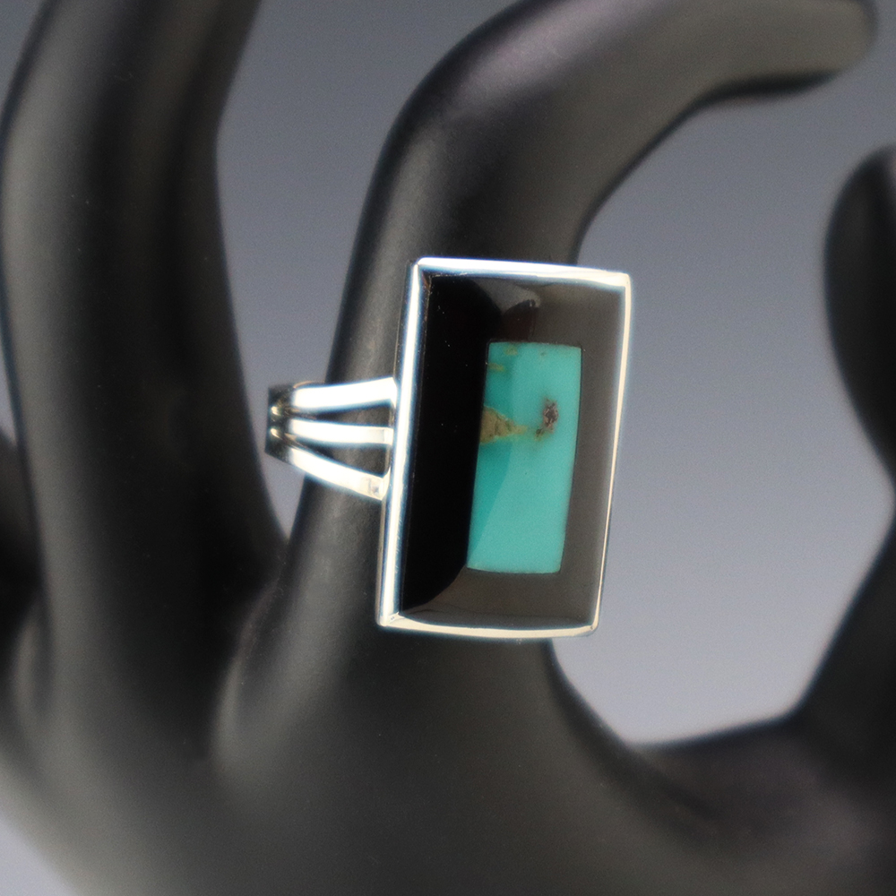 Magnificent cufflinks that feature Jet and Red Line Obsidian inlaid in a sterling silver setting. Hand made with high quality craftsmanship that is a great representation of the traditional inlay work. Hand made by Zuni jewelers Nancy and Sheldon Westika. The Westikas have been making jewelry since the 1970’s and...