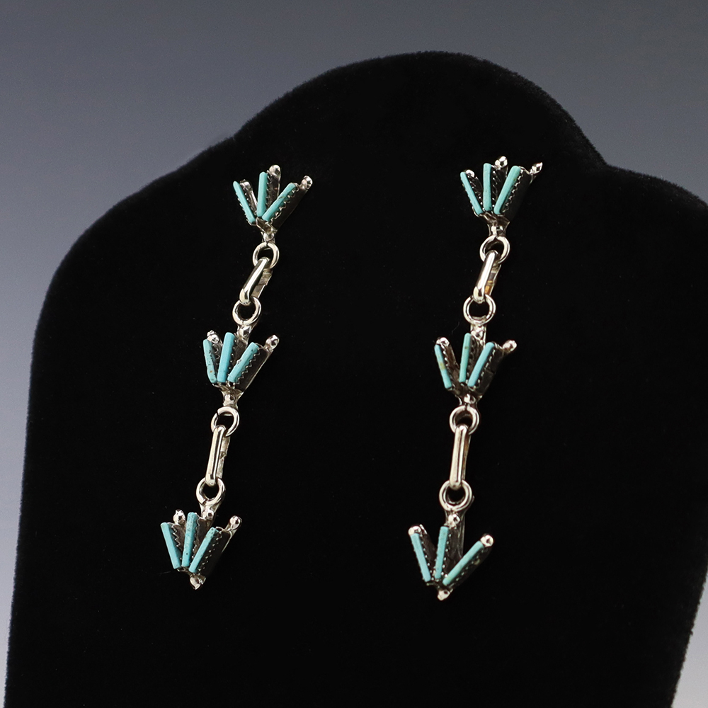 NATIVE AMERICAN ZUNI TURQUOISE EARRINGS BY NANCY & SHELDON WESTIKA
