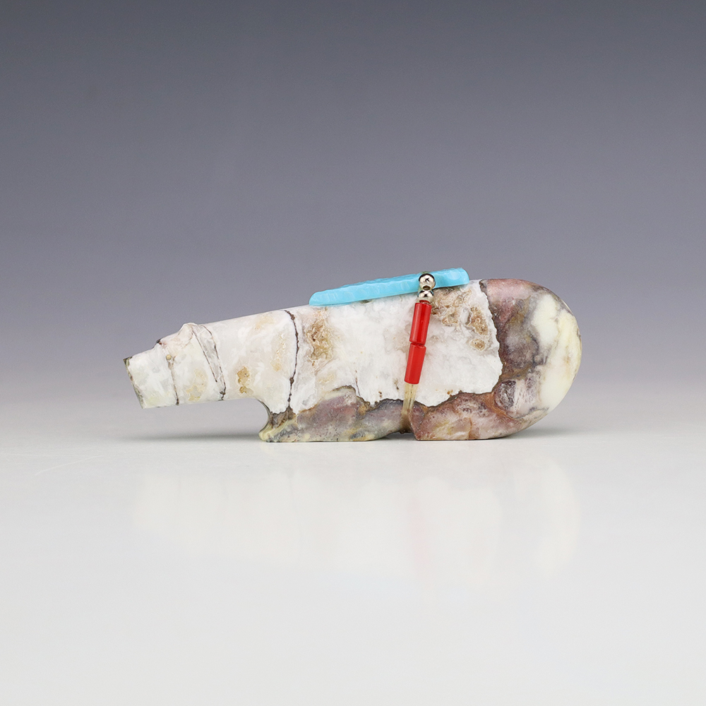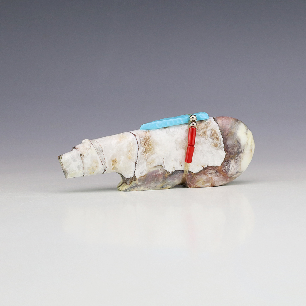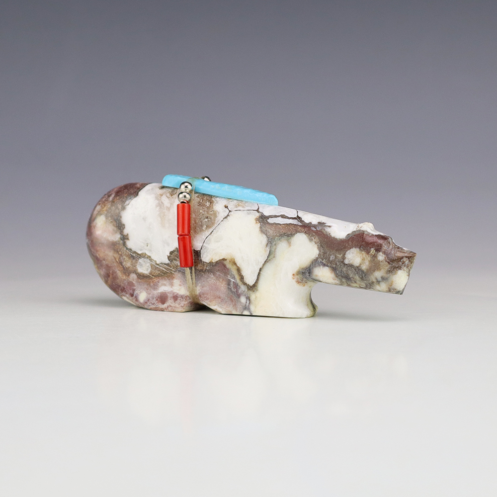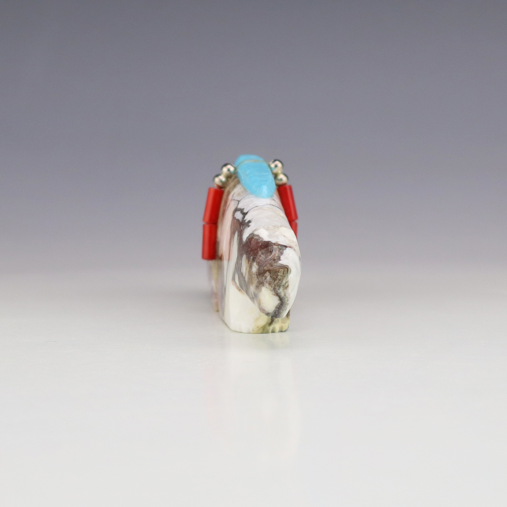 Zuni fetishes are carvings made from various materials by the Zuni people. Traditionally, fetishes served a ceremonial purpose for their creators and they represented animals and figures that were part of their culture. Today, as a form of Native American Art, they are sold to collectors worldwide. With a myriad of materials like turquoise, shell, jet, marble, serpentine, and much more, Zuni fetish carvers are able to create carvings in a style of their own.