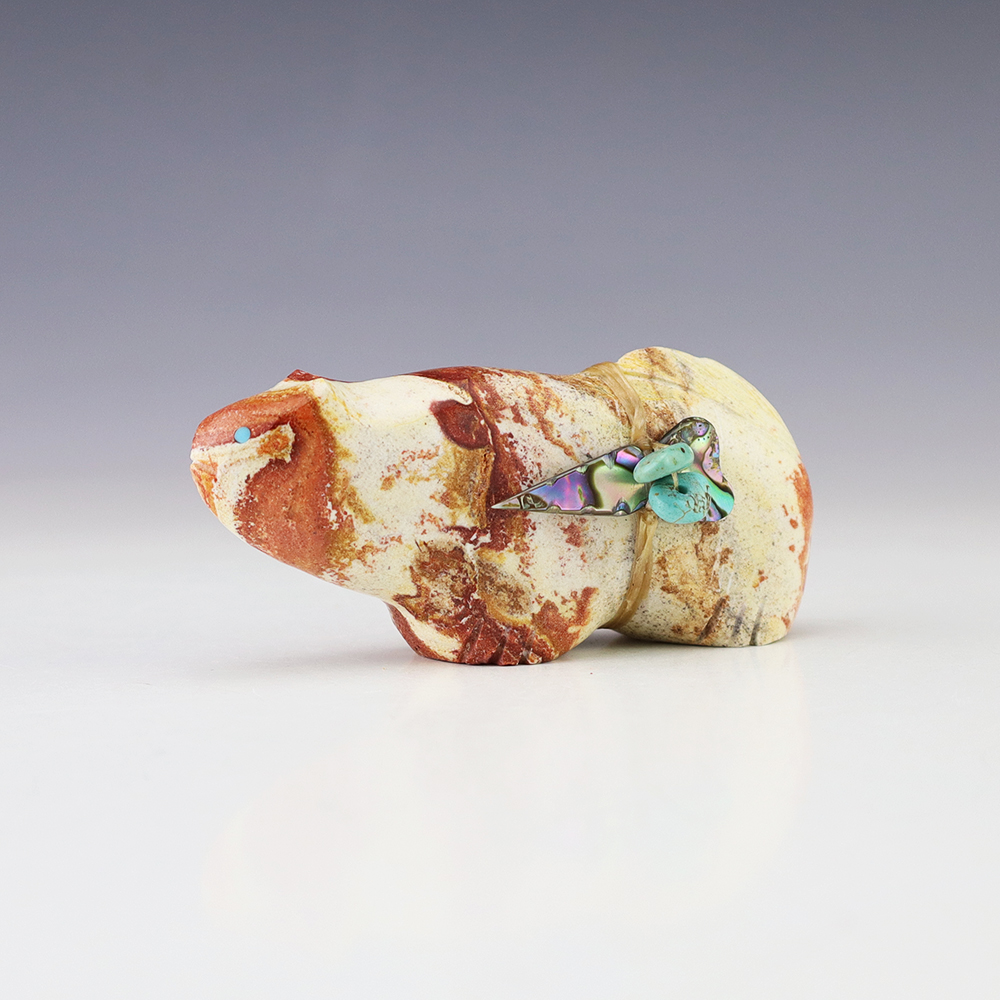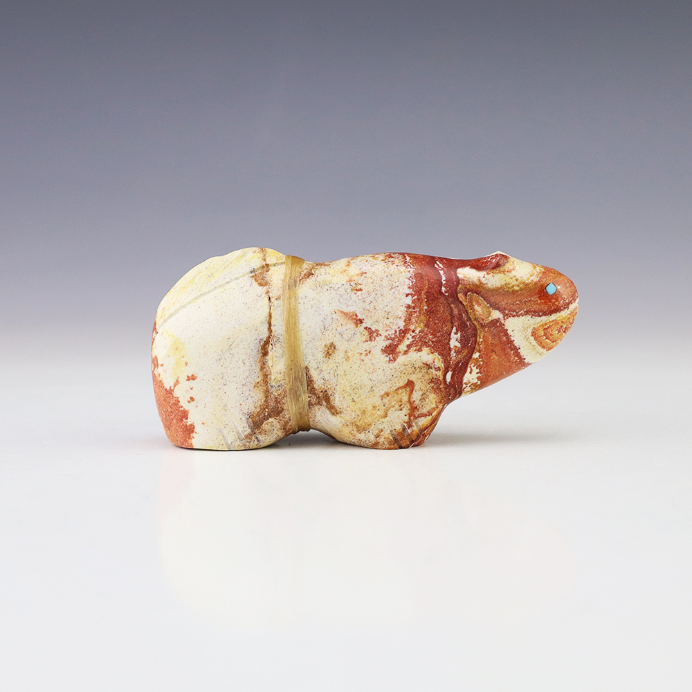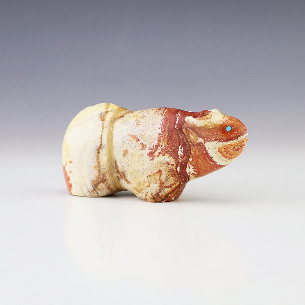 Zuni fetishes are carvings made from various materials by the Zuni people. Traditionally, fetishes served a ceremonial purpose for their creators and they represented animals and figures that were part of their culture. Today, as a form of Native American Art, they are sold to collectors worldwide. With a myriad of materials like turquoise, shell, jet, marble, serpentine, and much more, Zuni fetish carvers are able to create carvings in a style of their own.