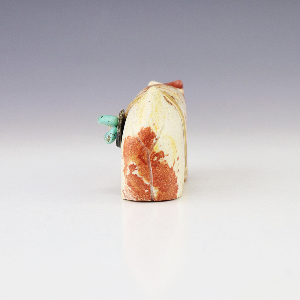 Zuni fetish artists Leland Boone and Daphne Quam hand crafted this wonderful mountain lion out of Wonderstone and bundled it with Abalone and Turquoise. Zuni mountain lion fetishes represent leadership and resourcefulness. A great addition to your Native American or Zuni fetish collection. (note-there is natural fracturing in the stone)
