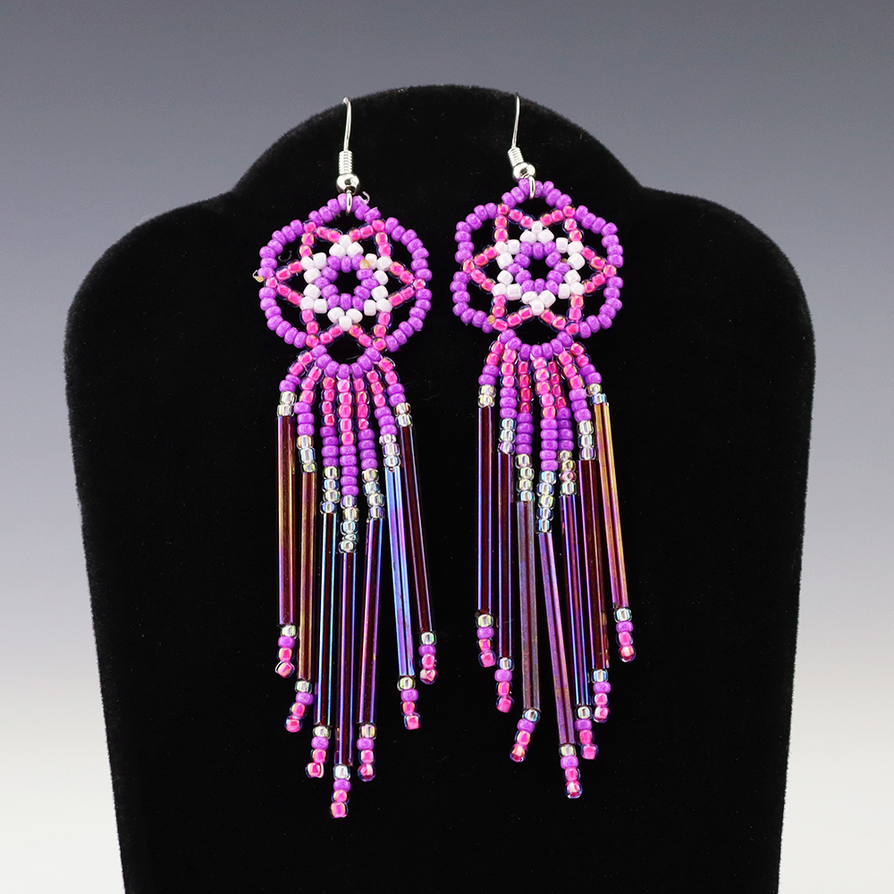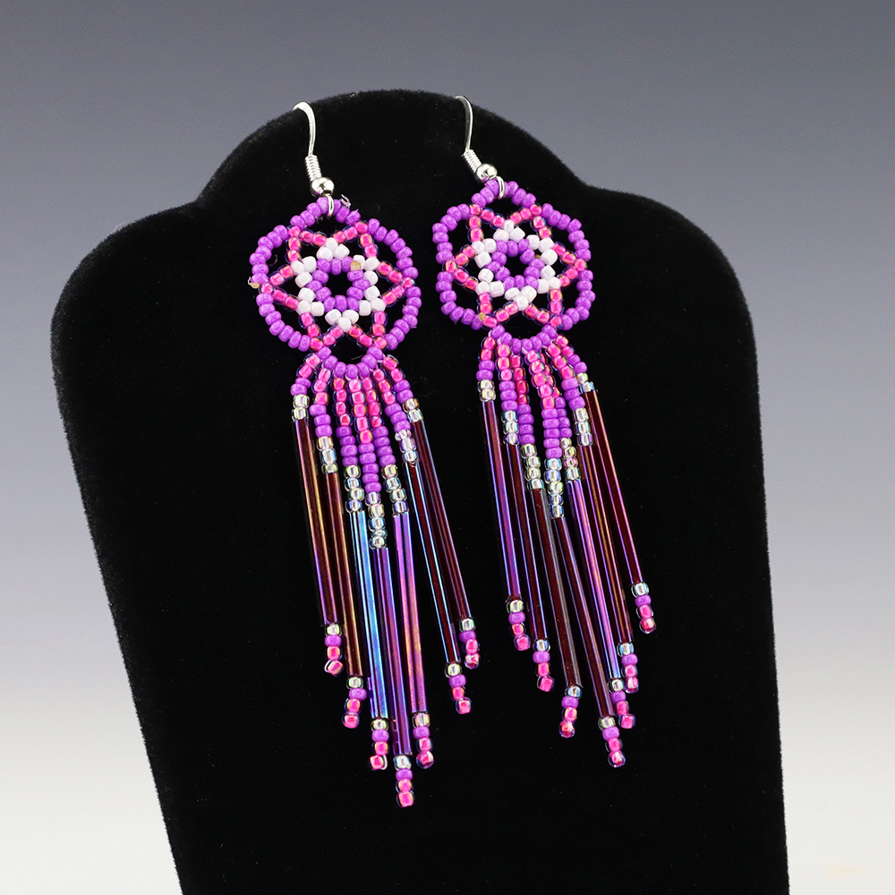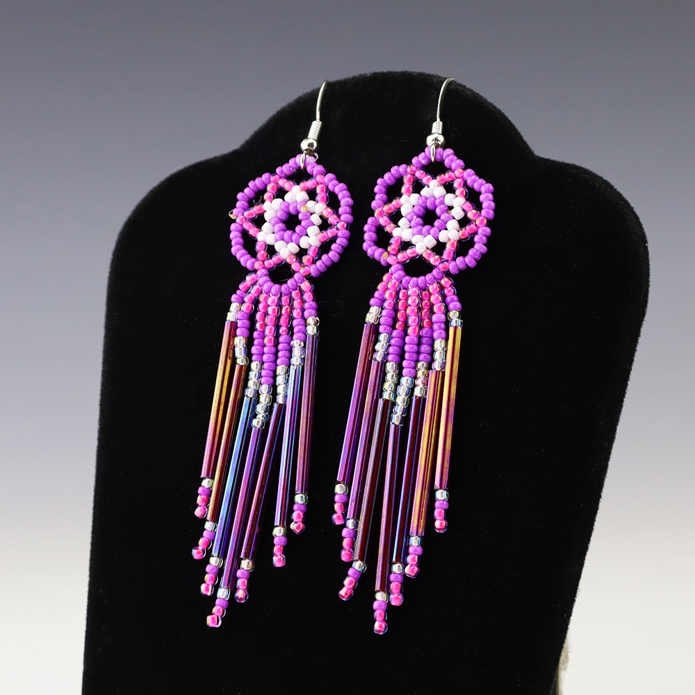 These beautiful beaded earrings will make a statement! Great colors and style. Hand made by Navajo artist Charlene Jackson.