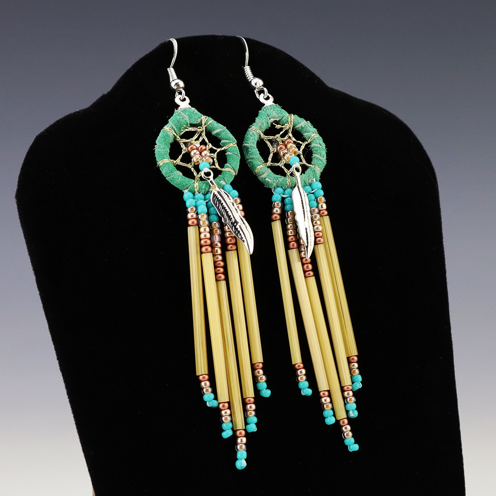When trade beads were introduced to Native Americans, they made these colorful glass beads part of their jewelry. Over the years, glass beads have been used to complement traditional designs and to adorn everything from clothing to ceremonial objects. Artists from the Navajo Reservation in the Four Corners Area, bead a variety of items, such as bracelets, key rings, barrettes, rattles, earrings, and much more. With beautiful designs and brilliant colors, Native American beadwork is appreciated by collectors worldwide.