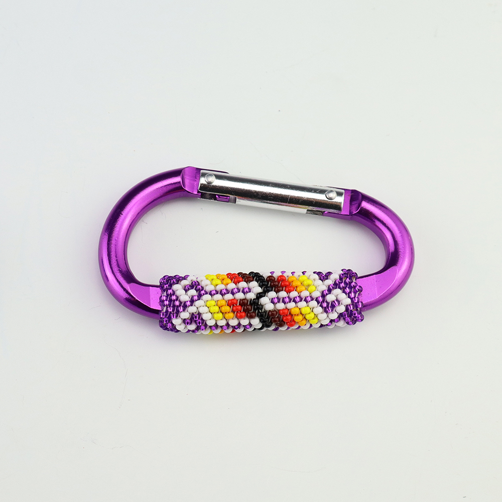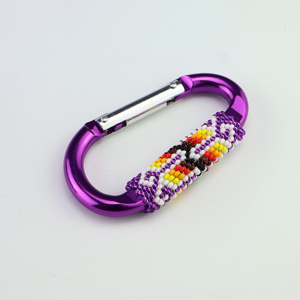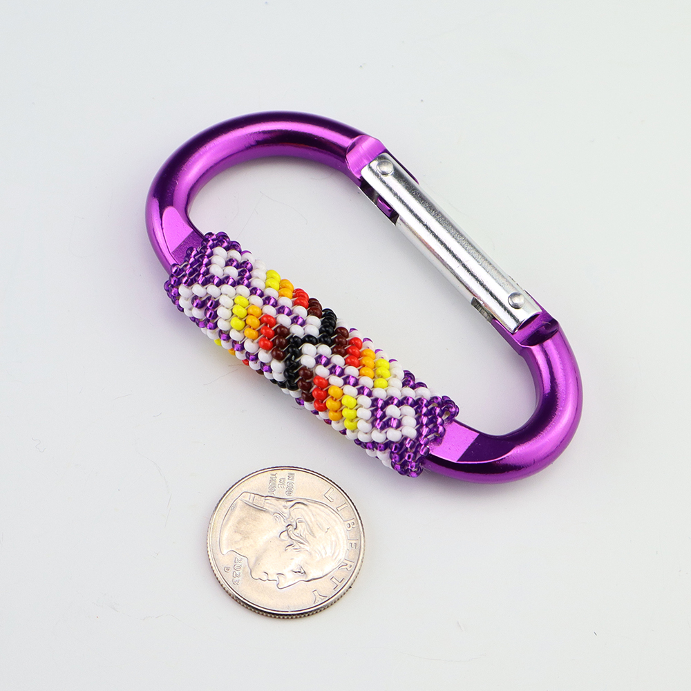 Great hand beaded carabiner key chain by Charlene Jackson. Carry your keys around in style! 3 1/8″ x 1 7/8″ x 1/2″ Artist card included When trade beads were introduced to Native Americans, they made these colorful glass beads part of their jewelry. Over the years, glass beads...