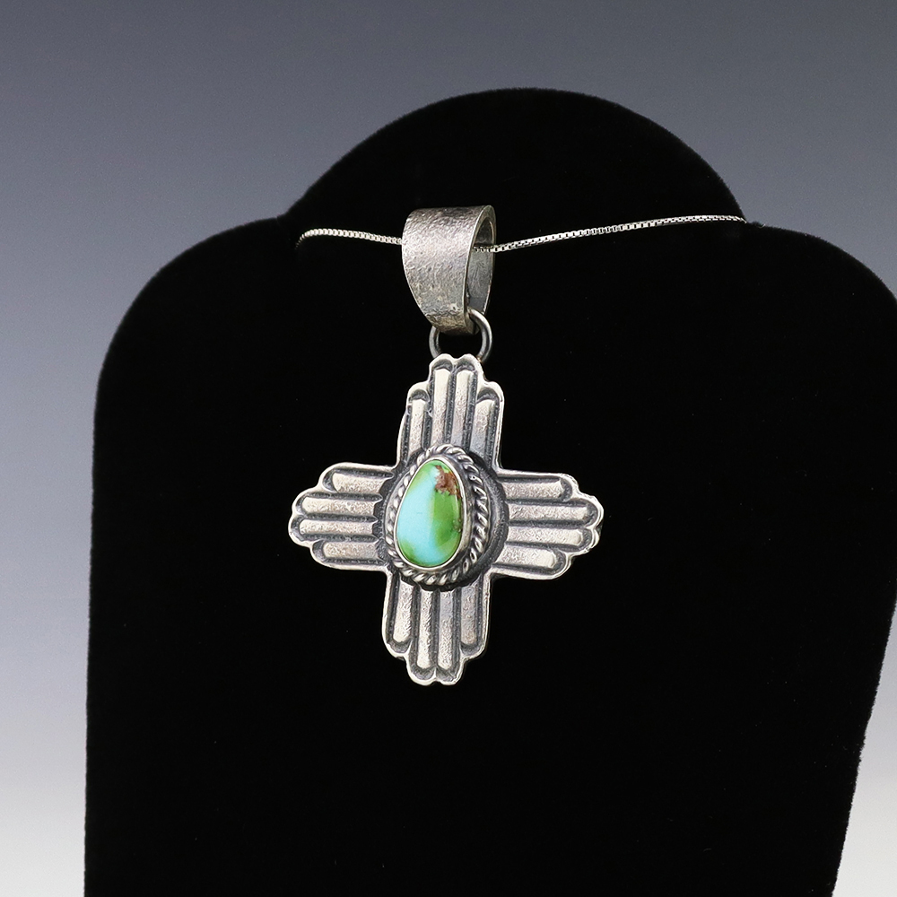 The Navajos began working with silver in the 19th century, and began making things like buckles, bridles, buttons, rings, canteens, hollow beads, earrings, crescent-shaped pendants (called “najas”), bracelets, crosses, powder chargers, tobacco canteens, and conchos (for belts). Their silversmithing skills has evolved and changed throughout the years, and in about 1880 Navajo silversmiths started to set turquoise in their silver work. Traditionally, Navajo artists worked with jewelry techniques like repousee and stamp work, but today they explored in other Native American jewelry making techniques like Zuni inlay work and Hopi overlay work.