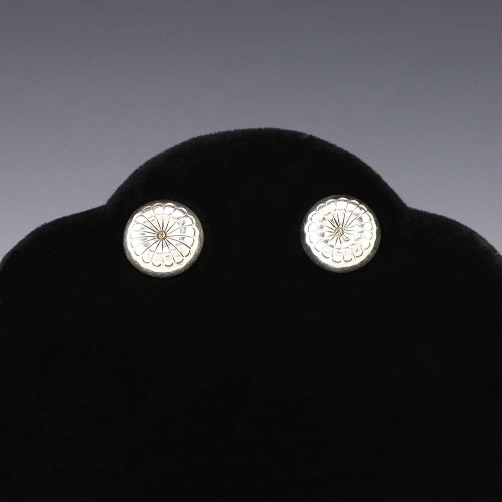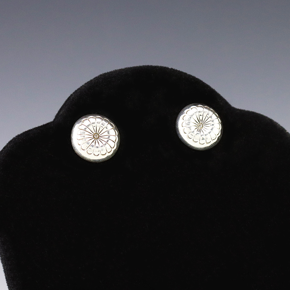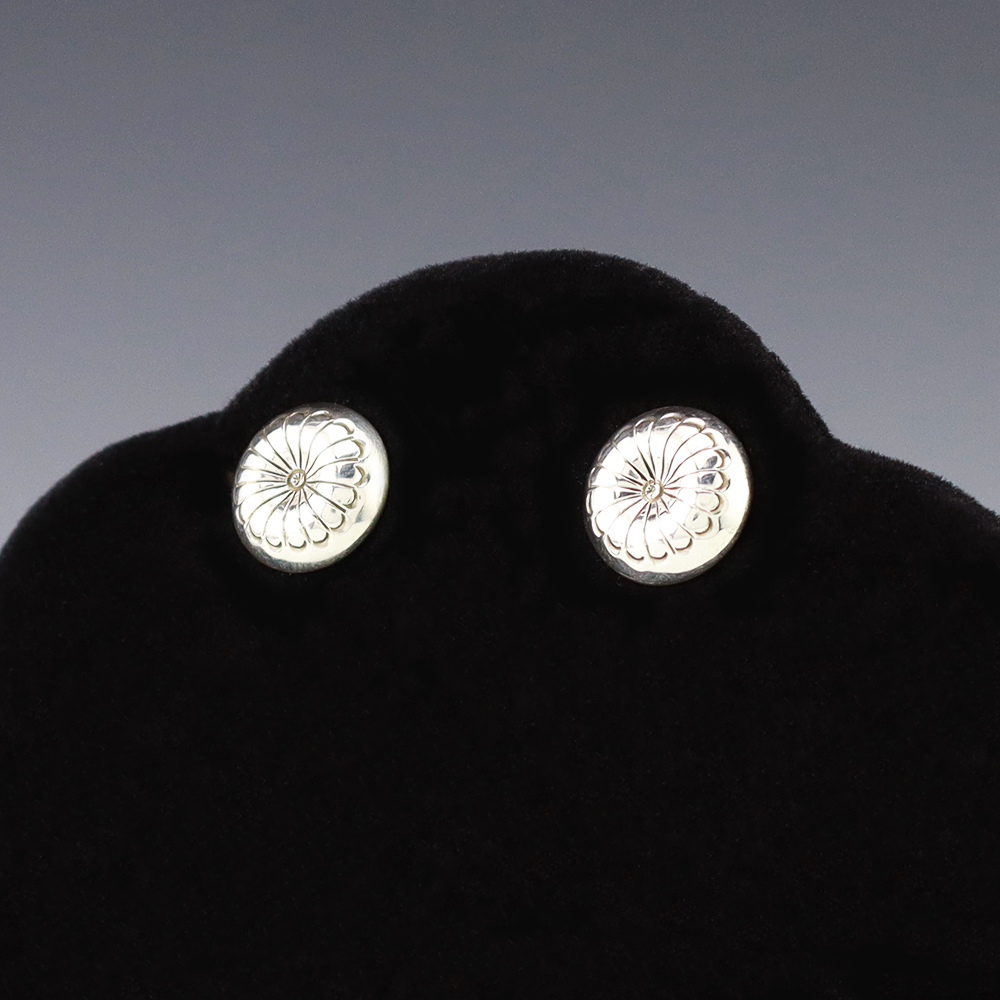 Striking cufflinks that will compliment any shirt. Handmade out of sterling silver with great stamp work. Weighs 8 grams. The cufflinks have nickle findings for durability. Signed 13/16” long x 9/16” wide The Navajos began working with silver in the 19th century, and began making things like buckles, bridles, buttons,...