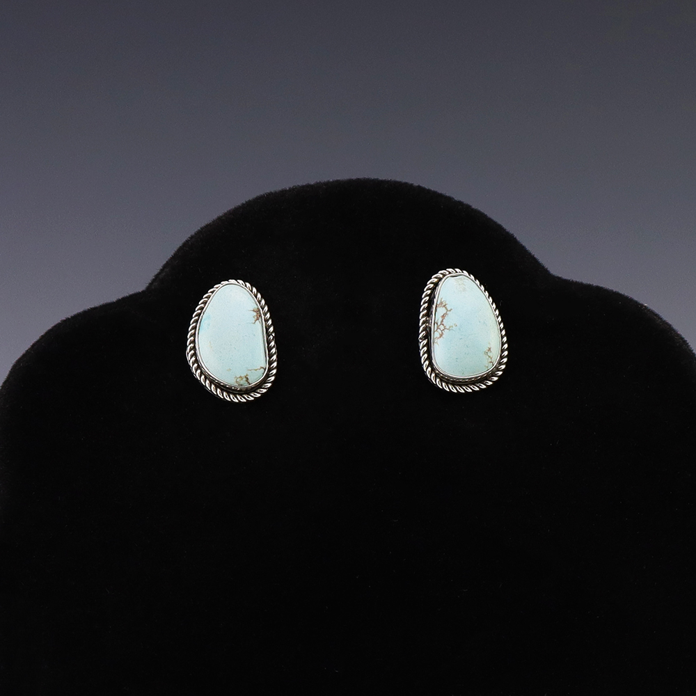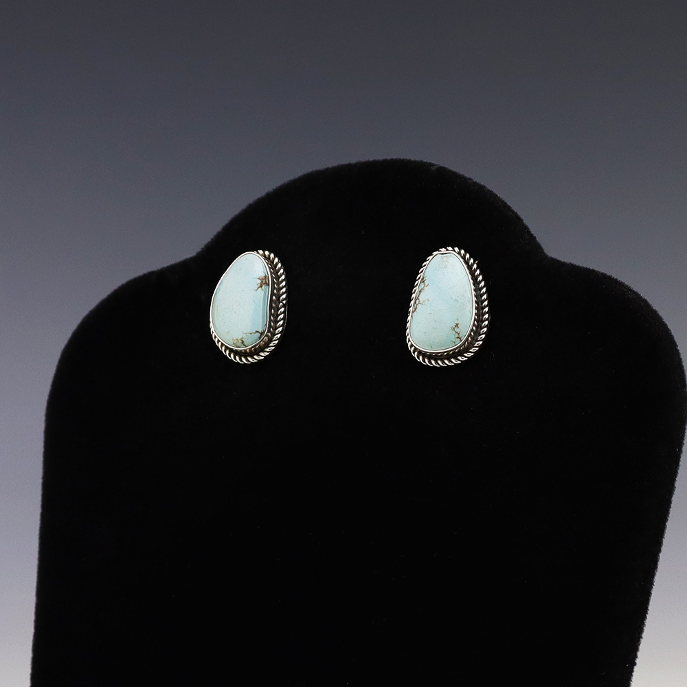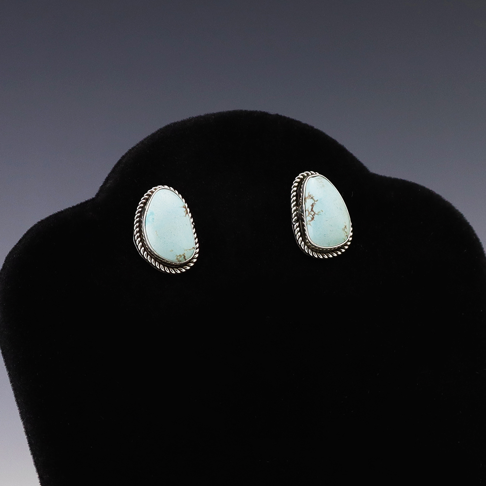 ZUNI MOTHER OF PEARL & TURQUOISE EARRINGS BY NANCY AND SHELDON WESTIKA