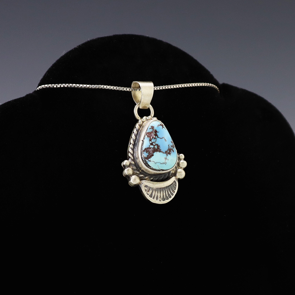 The Navajos began working with silver in the 19th century, and began making things like buckles, bridles, buttons, rings, canteens, hollow beads, earrings, crescent-shaped pendants (called “najas”), bracelets, crosses, powder chargers, tobacco canteens, and conchos (for belts). Their silversmithing skills has evolved and changed throughout the years, and in about 1880 Navajo silversmiths started to set turquoise in their silver work. Traditionally, Navajo artists worked with jewelry techniques like repousee and stamp work, but today they explored in other Native American jewelry making techniques like Zuni inlay work and Hopi overlay work.