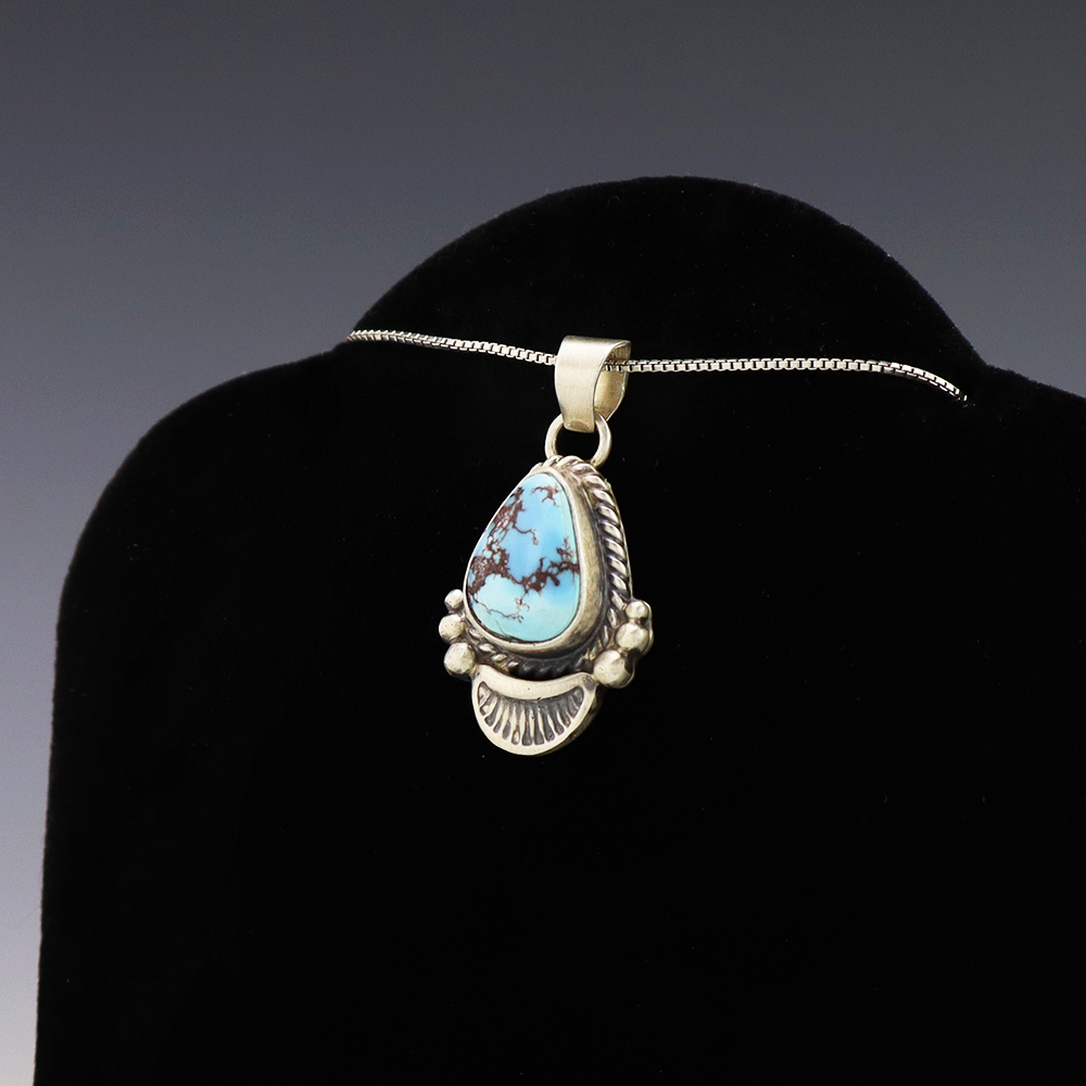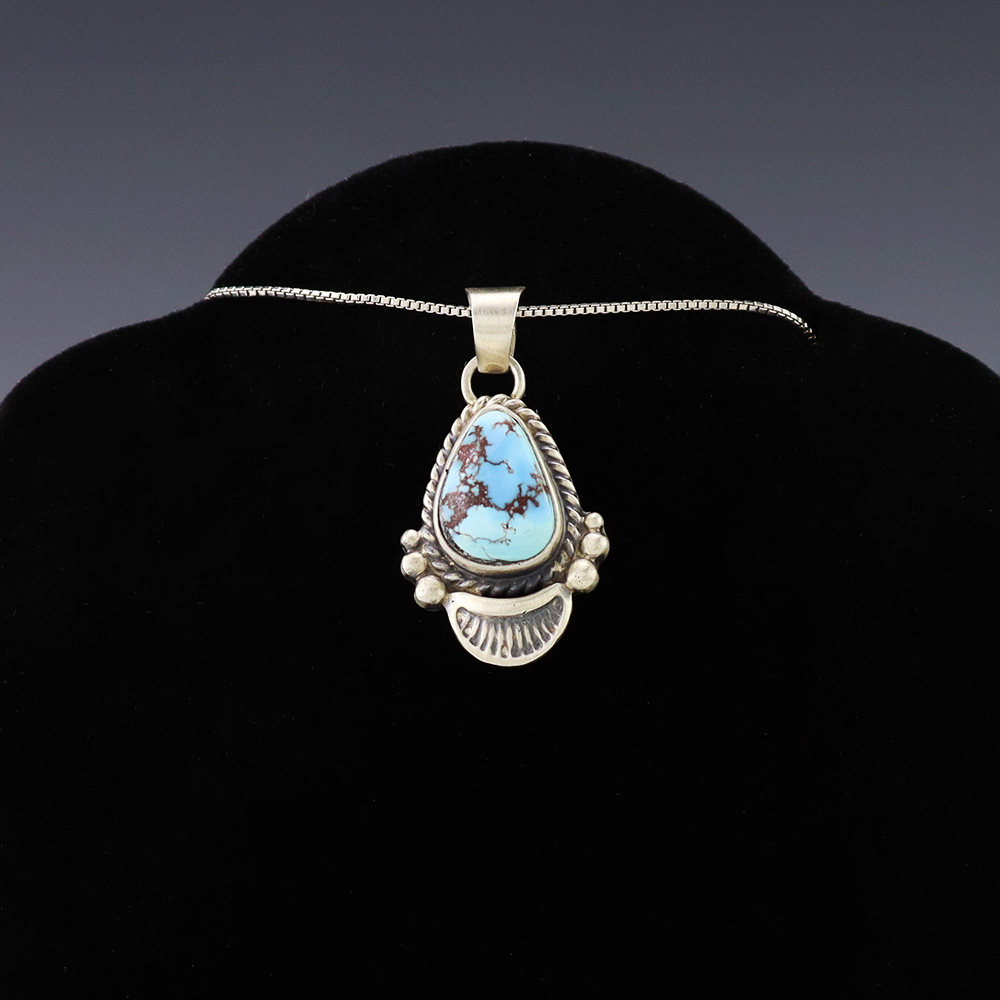 NATIVE AMERICAN NAVAJO STERLING SILVER & TURQUOISE NECKLACE BY GARY CUSTER