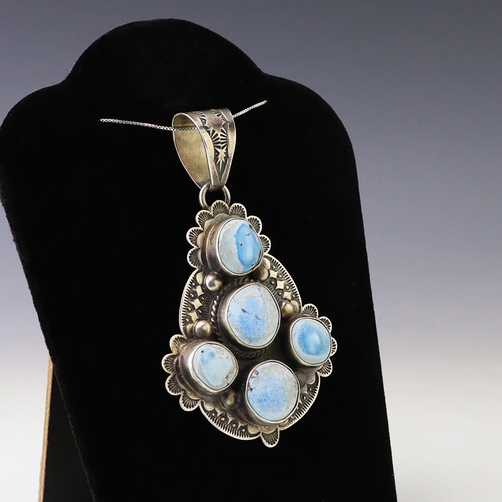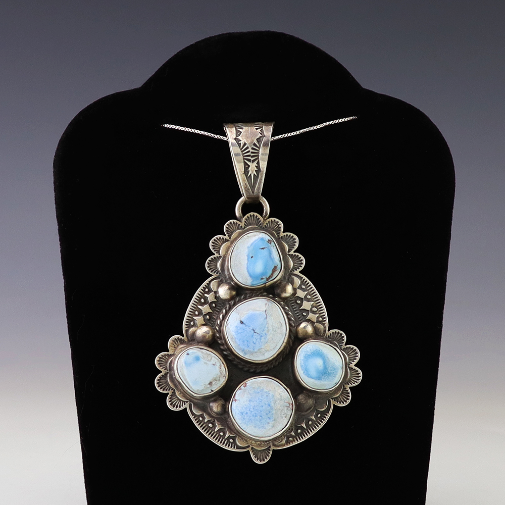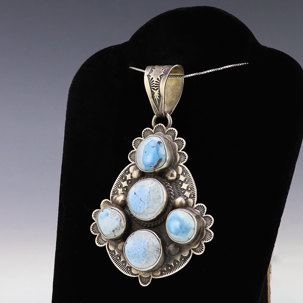 The Navajos began working with silver in the 19th century, and began making things like buckles, bridles, buttons, rings, canteens, hollow beads, earrings, crescent-shaped pendants (called “najas”), bracelets, crosses, powder chargers, tobacco canteens, and conchos (for belts). Their silversmithing skills has evolved and changed throughout the years, and in about 1880 Navajo silversmiths started to set turquoise in their silver work. Traditionally, Navajo artists worked with jewelry techniques like repousee and stamp work, but today they explored in other Native American jewelry making techniques like Zuni inlay work and Hopi overlay work.