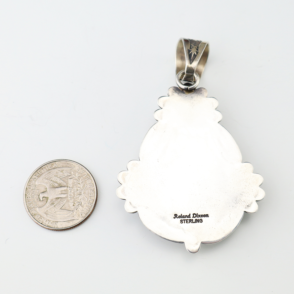 Navajo silversmith Will Denetdale made this outstanding pendant. Great Rhodochrosite stone, that is surrounded by great silver work. A timeless beauty that you will enjoy for years to come. Weighs 6 grams. (Chain not included) Signed 3/4” wide x 1 3/8” long Artist card included The Navajos began working with...
