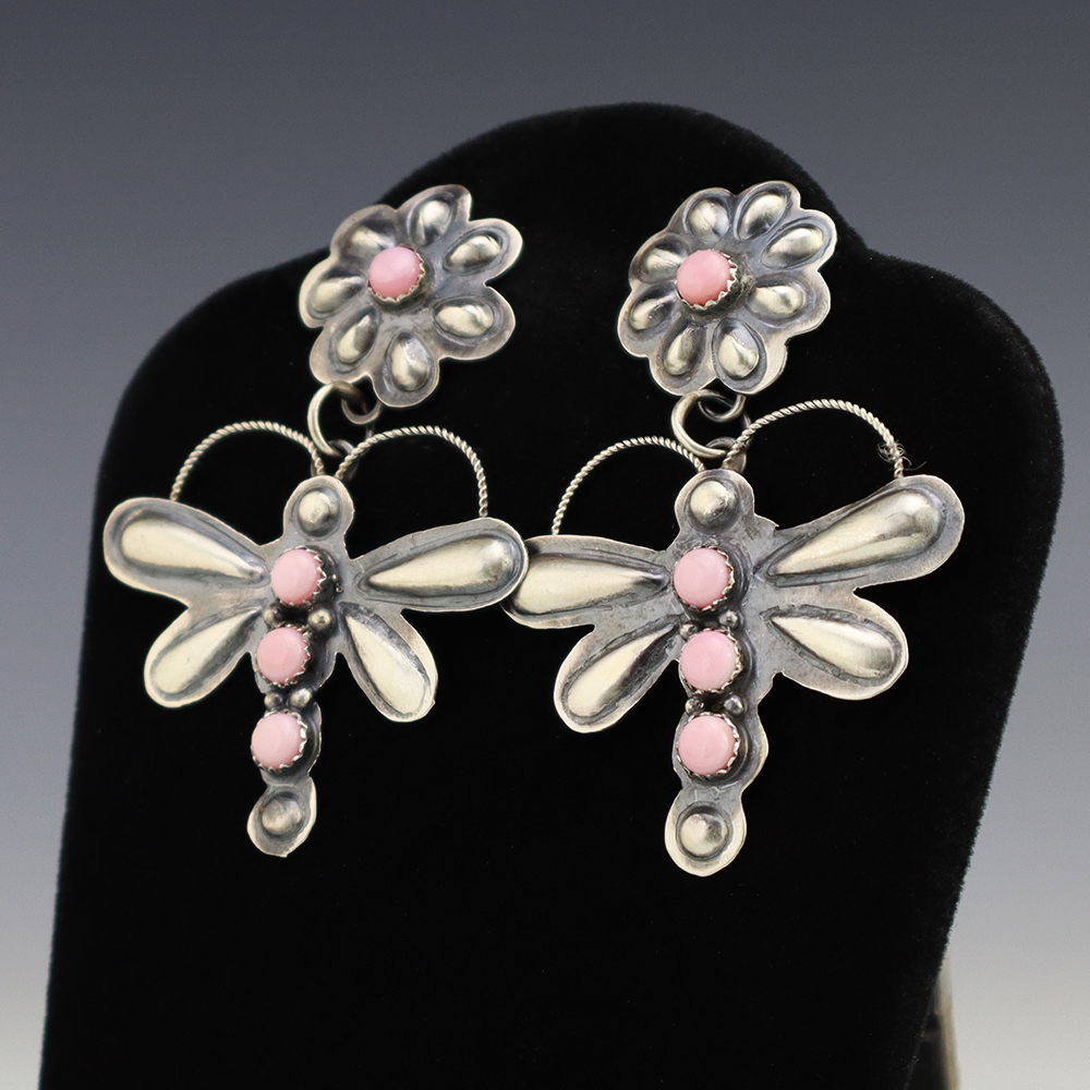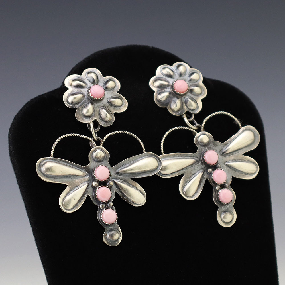 The Navajos began working with silver in the 19th century, and began making things like buckles, bridles, buttons, rings, canteens, hollow beads, earrings, crescent-shaped pendants (called “najas”), bracelets, crosses, powder chargers, tobacco canteens, and conchos (for belts). Their silversmithing skills has evolved and changed throughout the years, and in about 1880 Navajo silversmiths started to set turquoise in their silver work. Traditionally, Navajo artists worked with jewelry techniques like repousee and stamp work, but today they explored in other Native American jewelry making techniques like Zuni inlay work and Hopi overlay work.