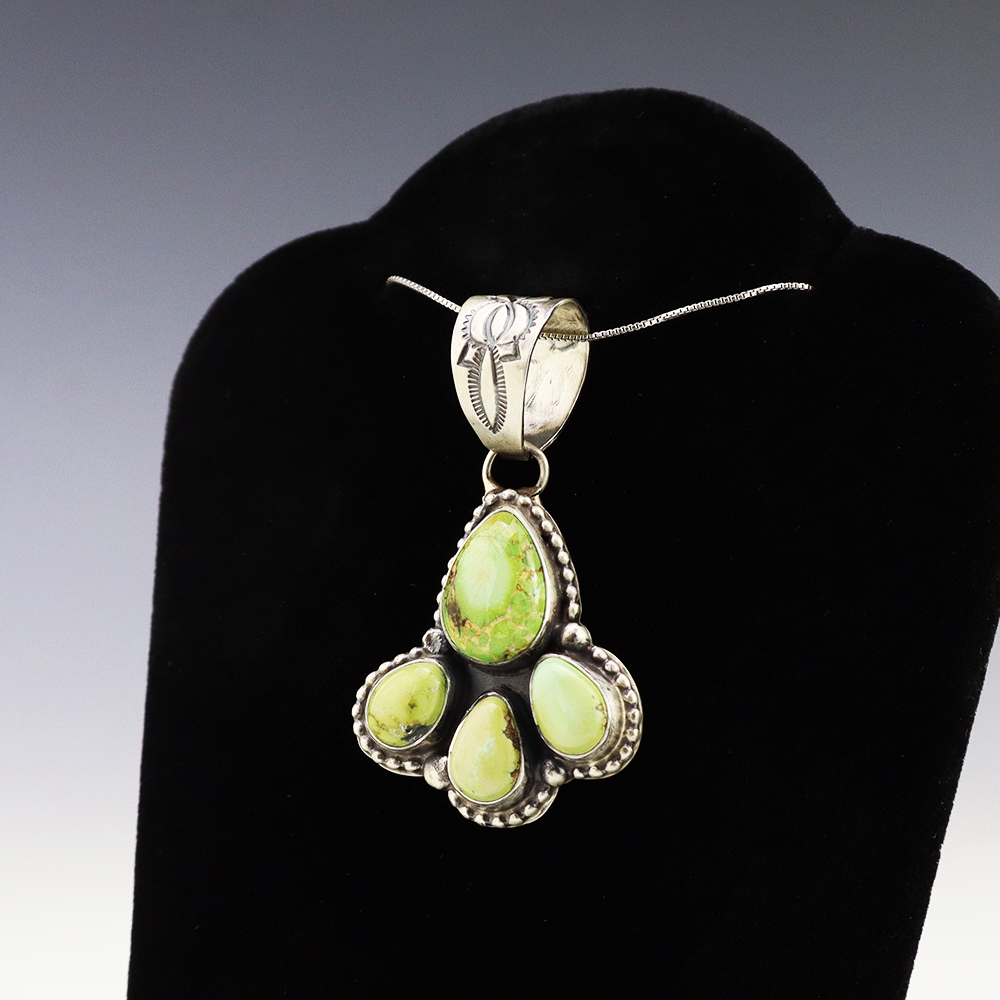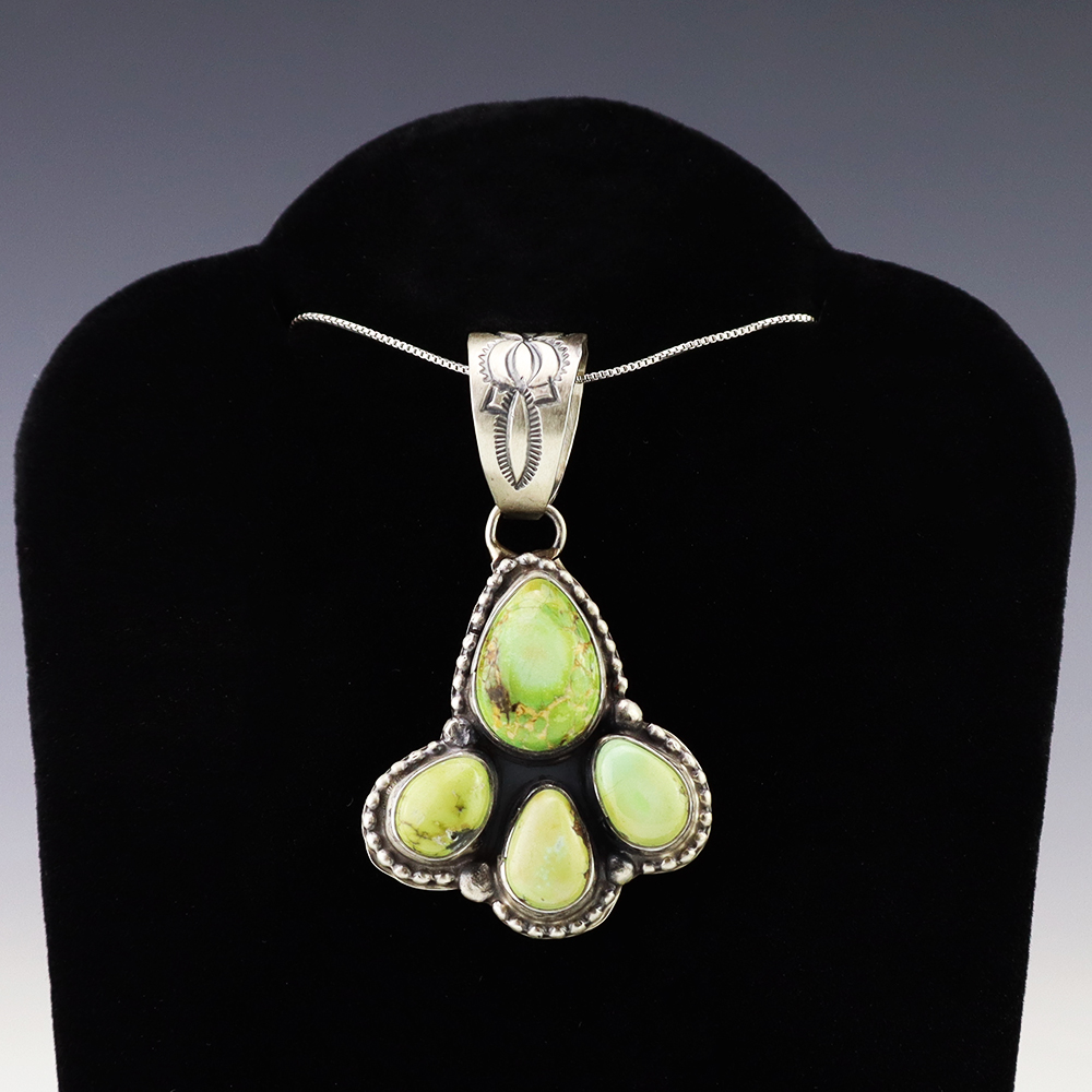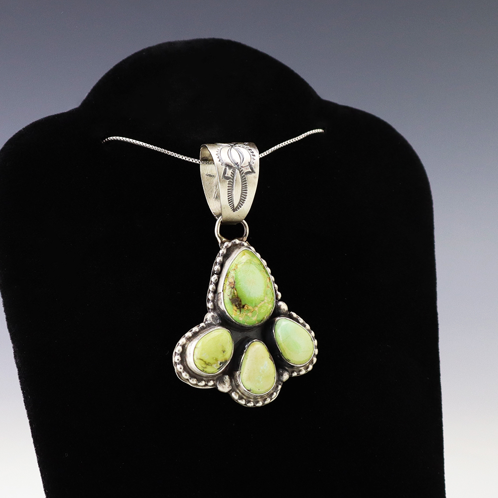Gorgeous pendant hand made out of sterling silver and Sonoran Gold Turquoise by Navajo artist Ella Peter. A timeless beauty that you will enjoy for years to come. Weighs 12 grams. Signed (Chain not included)