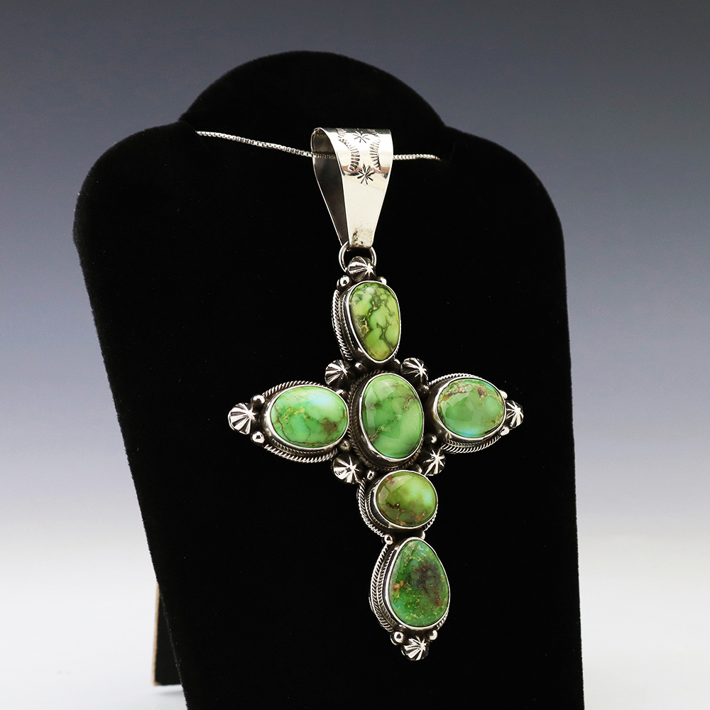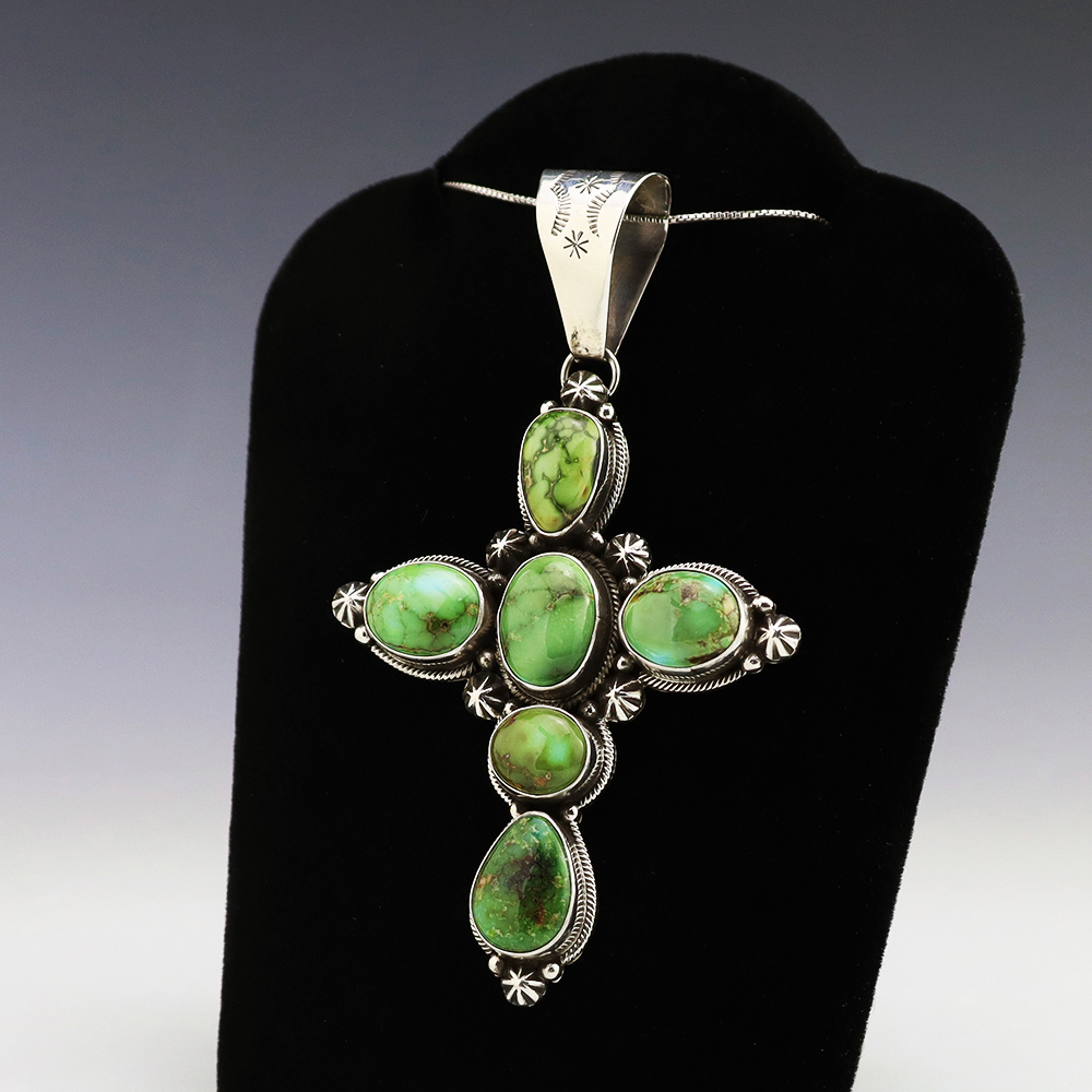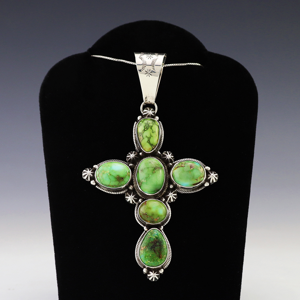 The Navajos began working with silver in the 19th century, and began making things like buckles, bridles, buttons, rings, canteens, hollow beads, earrings, crescent-shaped pendants (called “najas”), bracelets, crosses, powder chargers, tobacco canteens, and conchos (for belts). Their silversmithing skills has evolved and changed throughout the years, and in about 1880 Navajo silversmiths started to set turquoise in their silver work. Traditionally, Navajo artists worked with jewelry techniques like repousee and stamp work, but today they explored in other Native American jewelry making techniques like Zuni inlay work and Hopi overlay work.