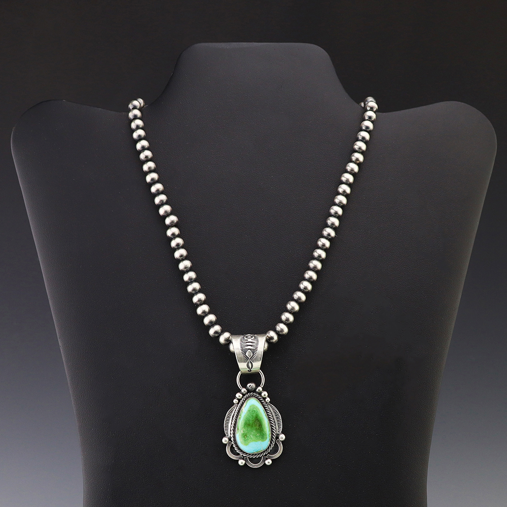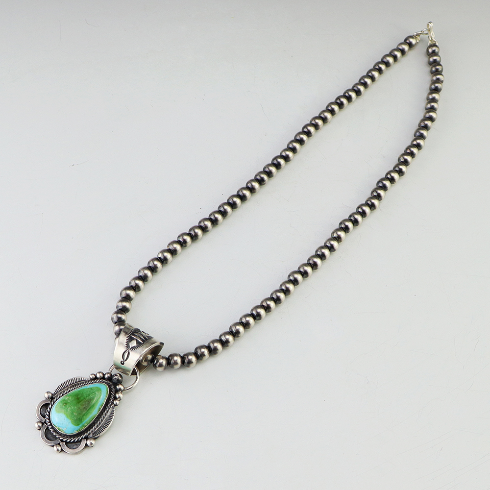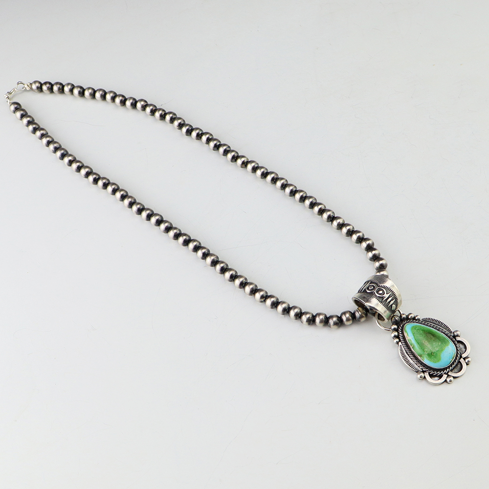 NATIVE AMERICAN NAVAJO STERLING SILVER & TURQUOISE NECKLACE BY GARY CUSTER
